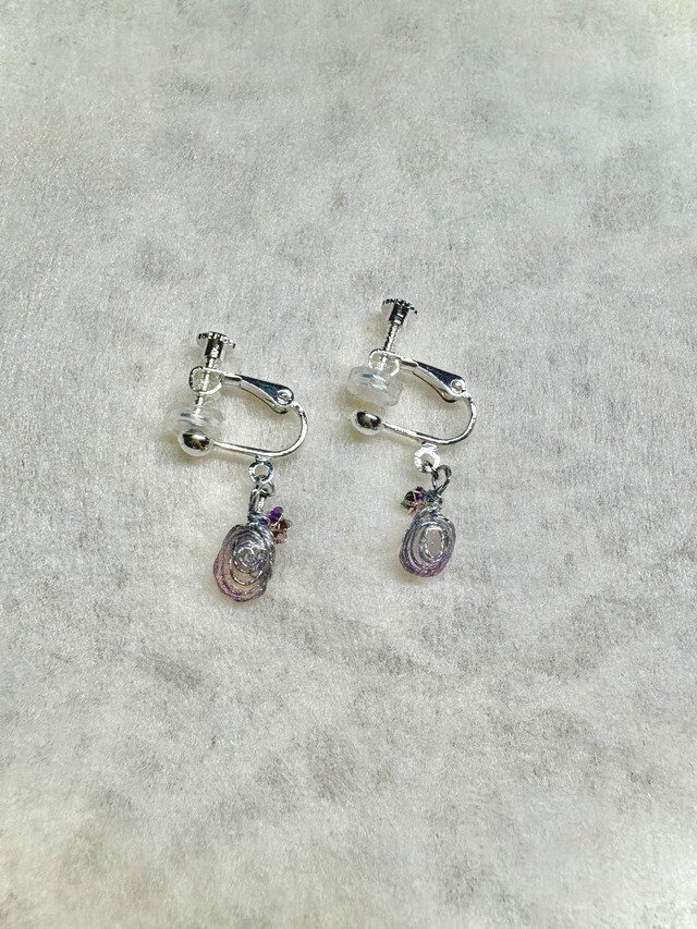 「石の奇跡〜石に花が咲きました」シリーズ 美しいアメトリンのイヤリング シンプルでありながら、あなたのスタイルを一層引き立てる魅力的なデザインです。 アメトリン、約6〜7ミリ ピアスに変更可能 アメトリン: 調和、バランス、ストレス解消 薄紫の美しいアメトリンが持つ神秘的な魅力が、心に安らぎとバランスをもたらします。 身につけることで、ストレスを軽減し、心身の調和を促す効果が期待できます。 一つとして同じものはなく、あなただけの特別なイヤリングです。 ¥4100((4510) 送料無料 1点のみです ※環境や光の加減により、写真と実物の色合いが異なる場合があります。 ※天然石は一点物で、細部に個体差があります。 ※アクセサリーはデリケートです。パーツや金具等に無理な力がかかると変形する場合がありますので、優しくお取り扱いください。 ※アレルギーに配慮した素材を使用していますが、体質には個人差があります。ご自身の体調やお肌の様子を見ながらご使用ください。 ※マルシェや他でも販売致しますので、タイミングにより在庫切れの場合がございます。ご理解の程宜しくお願い致します。
