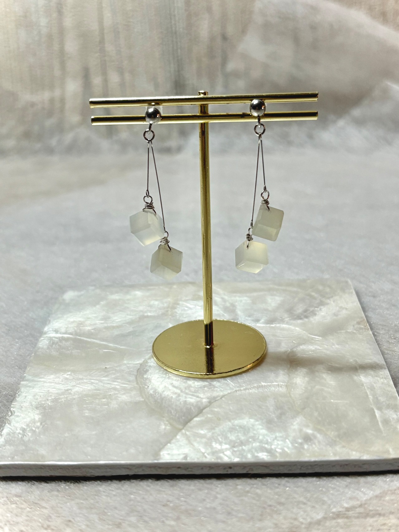 美しいムーンストーンが輝くキューブ型のピアスです。
