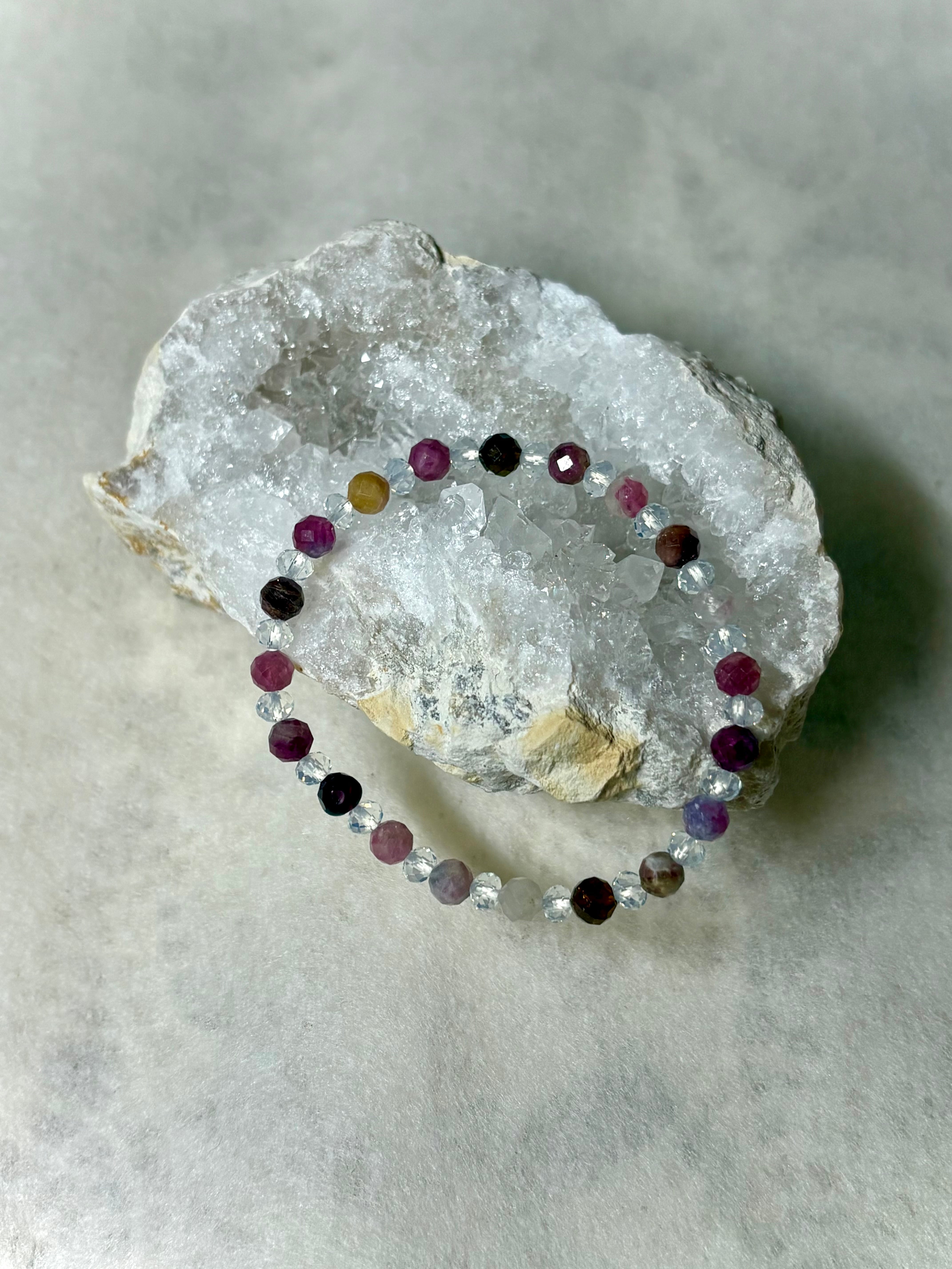 美しいトルマリンのホワイト、ピンク、パープルを使ったミックストルマリンブレスレット。