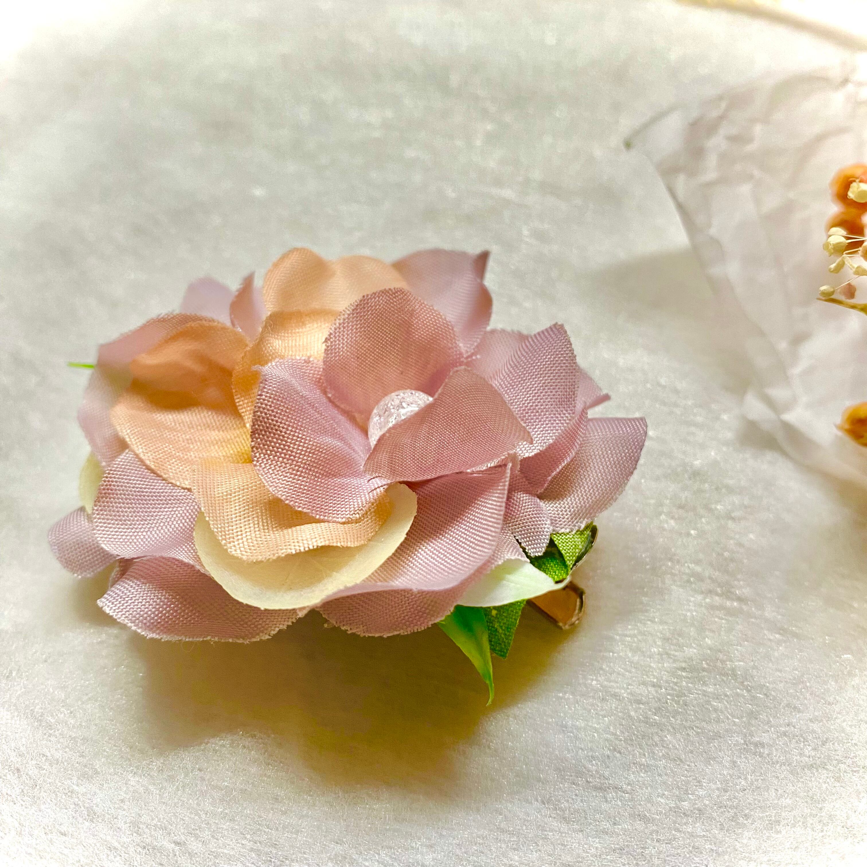 裏はブローチピンの付いたクリップになっていますので、ヘアーコサージュ、バッグコサージュ、スカーフ留めなど、色んな用途に使って頂けます。