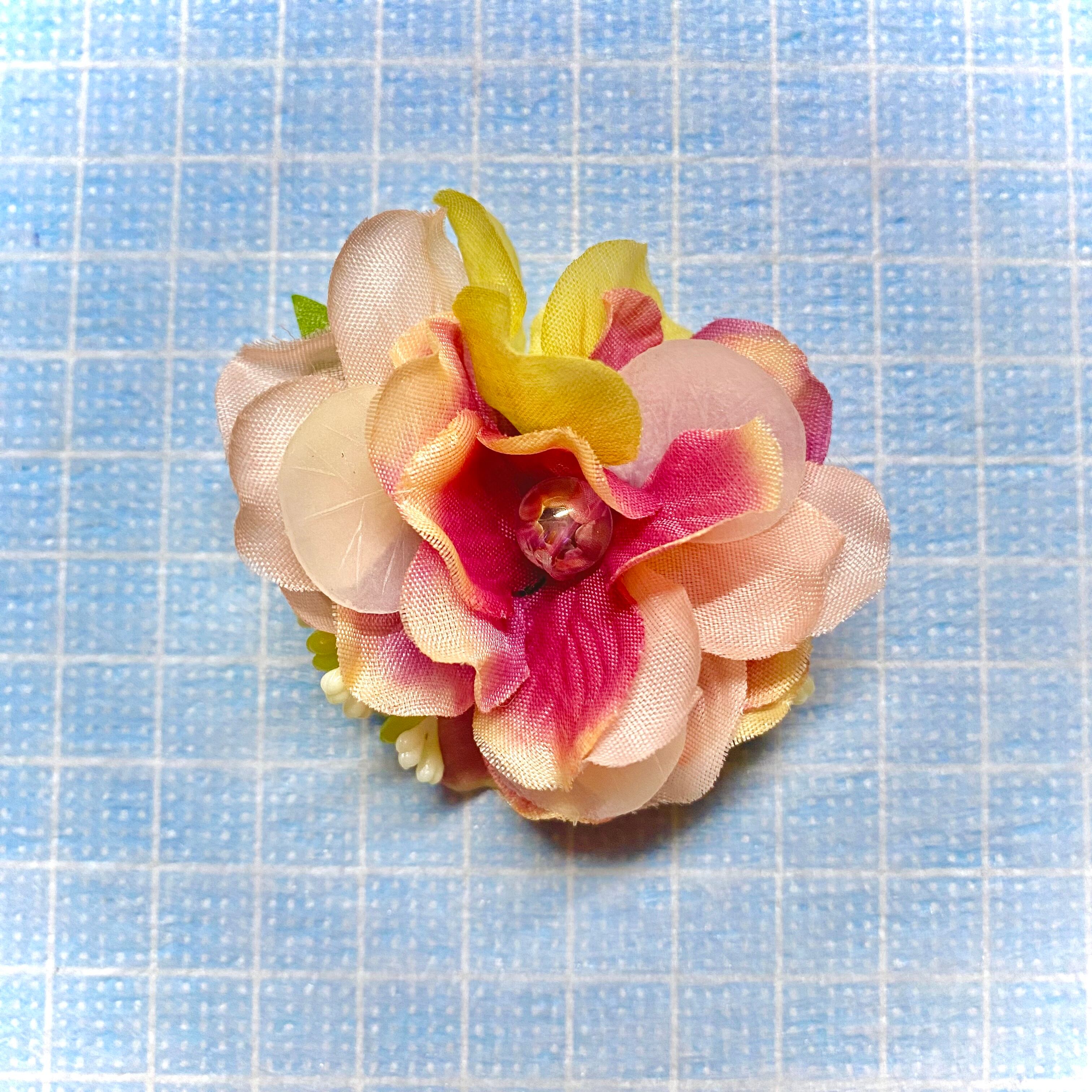 裏はブローチピンの付いたクリップになっていますので、ヘアーコサージュ、バッグコサージュ、スカーフ留めなど、色んな用途に使って頂けます。