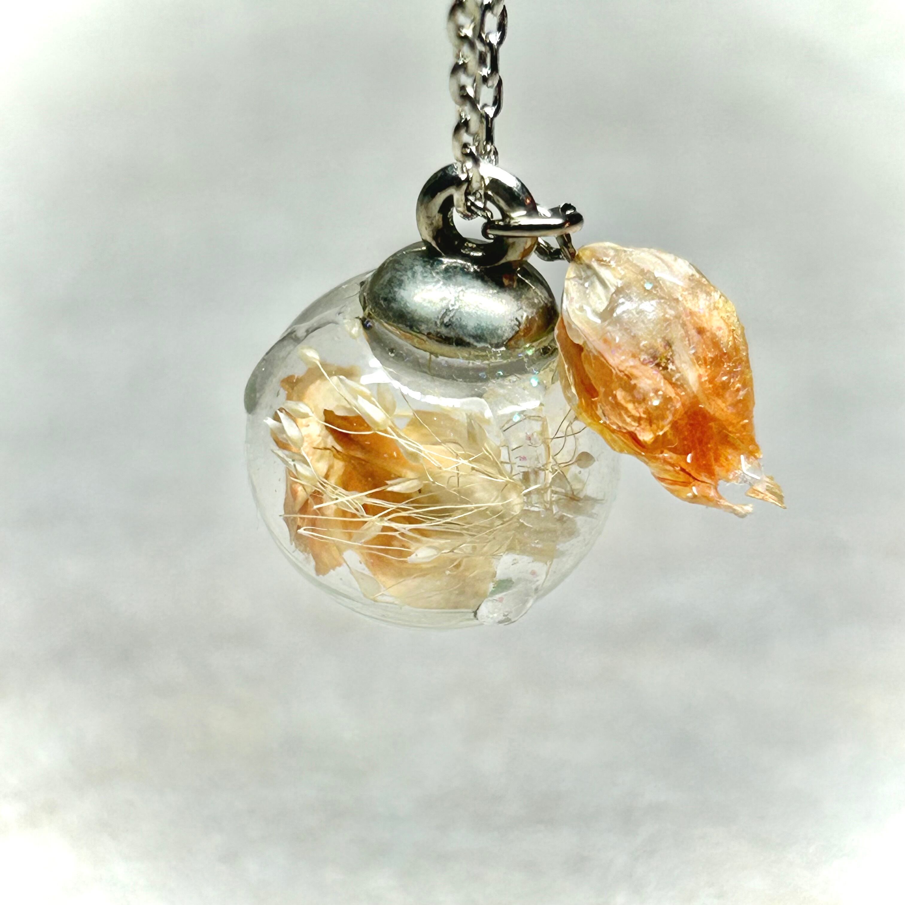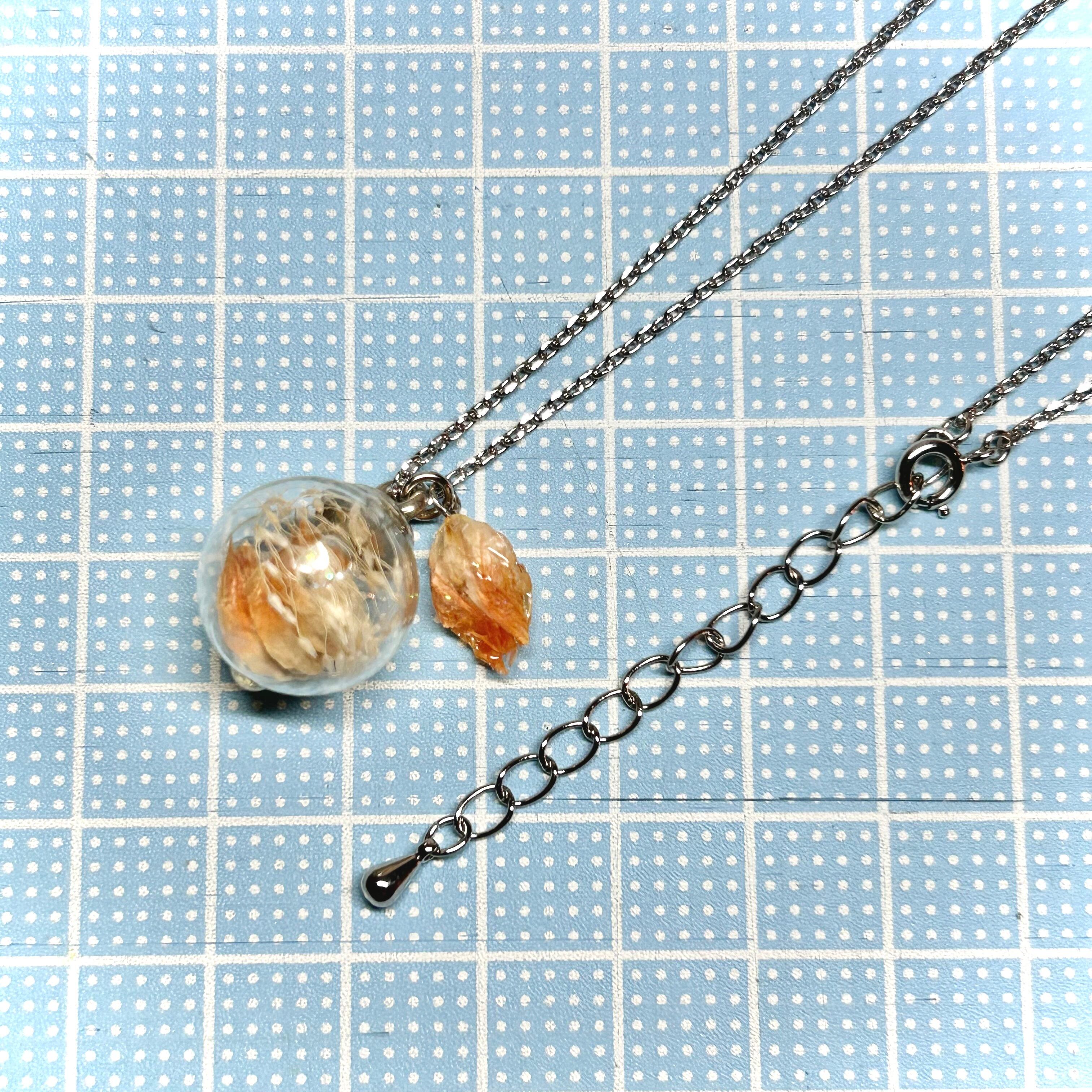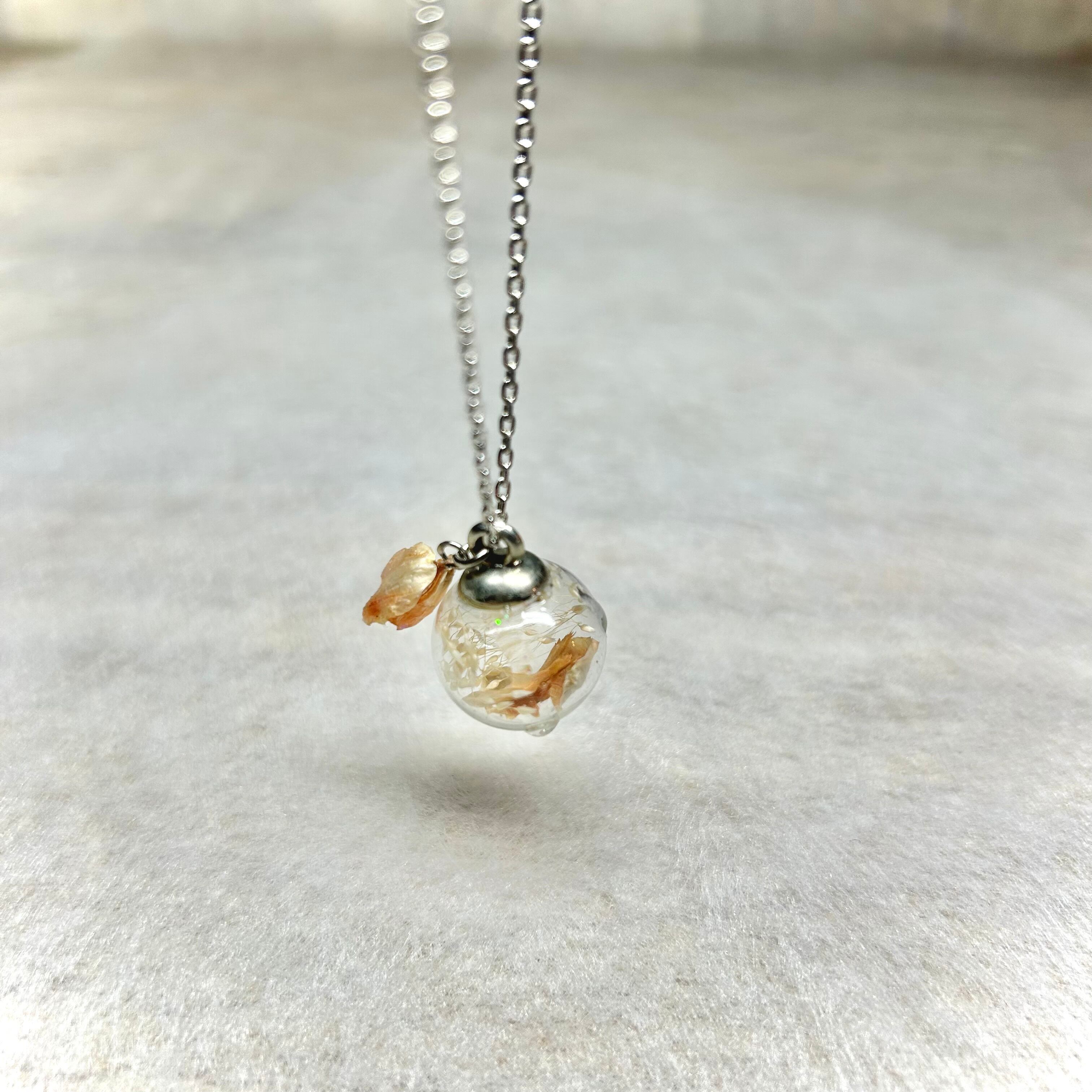 約16ミリのガラスドームの中に、ドライフラワーを閉じ込めました