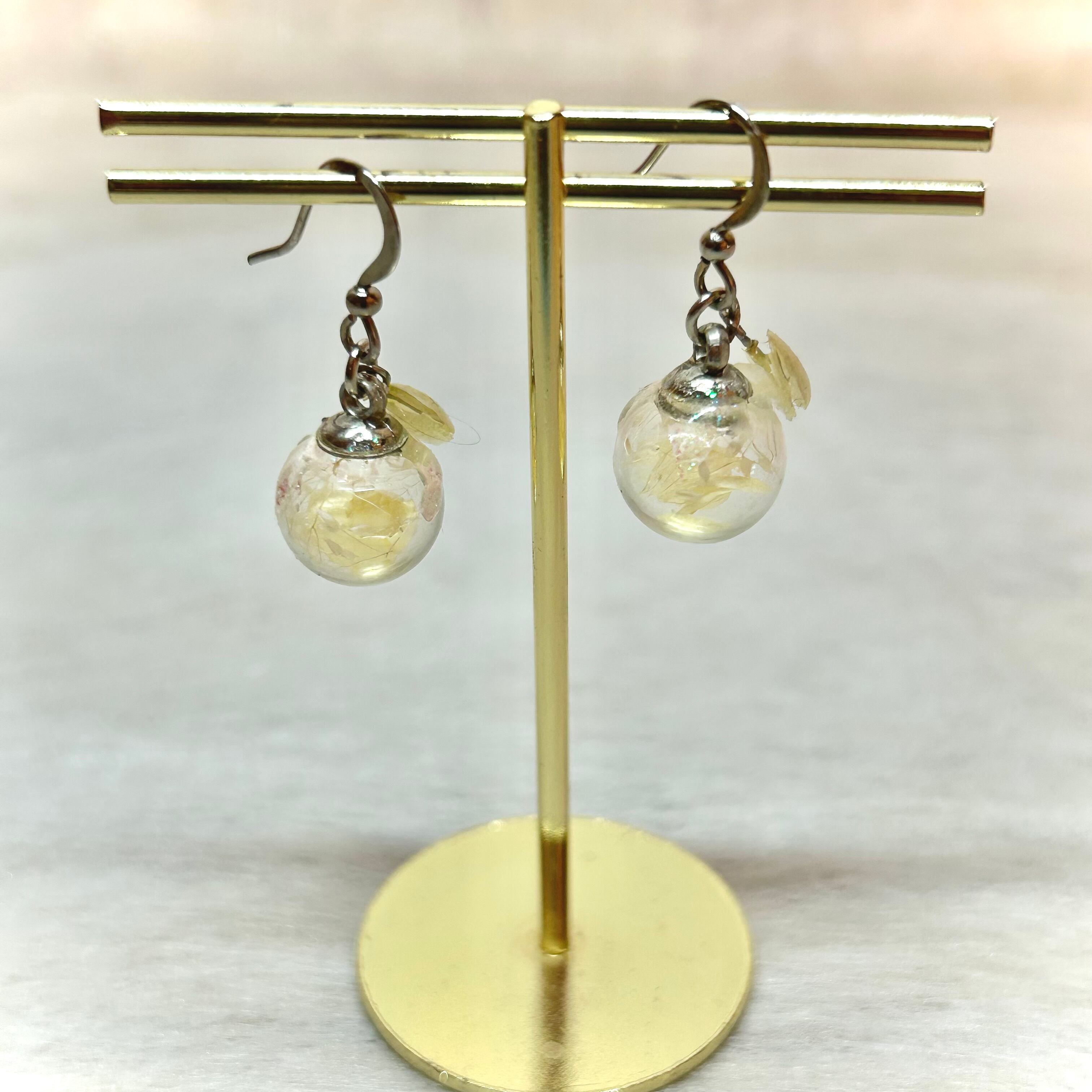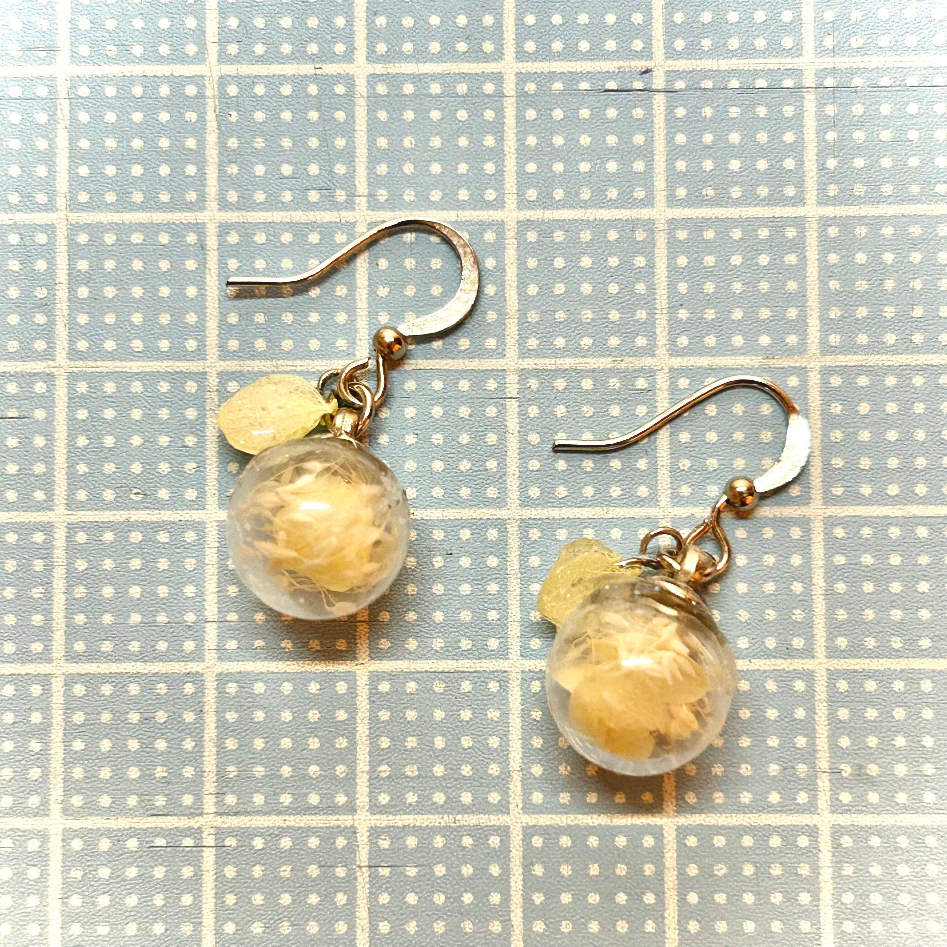 アンティーク風フラワードームピアス(イエローNo.2)