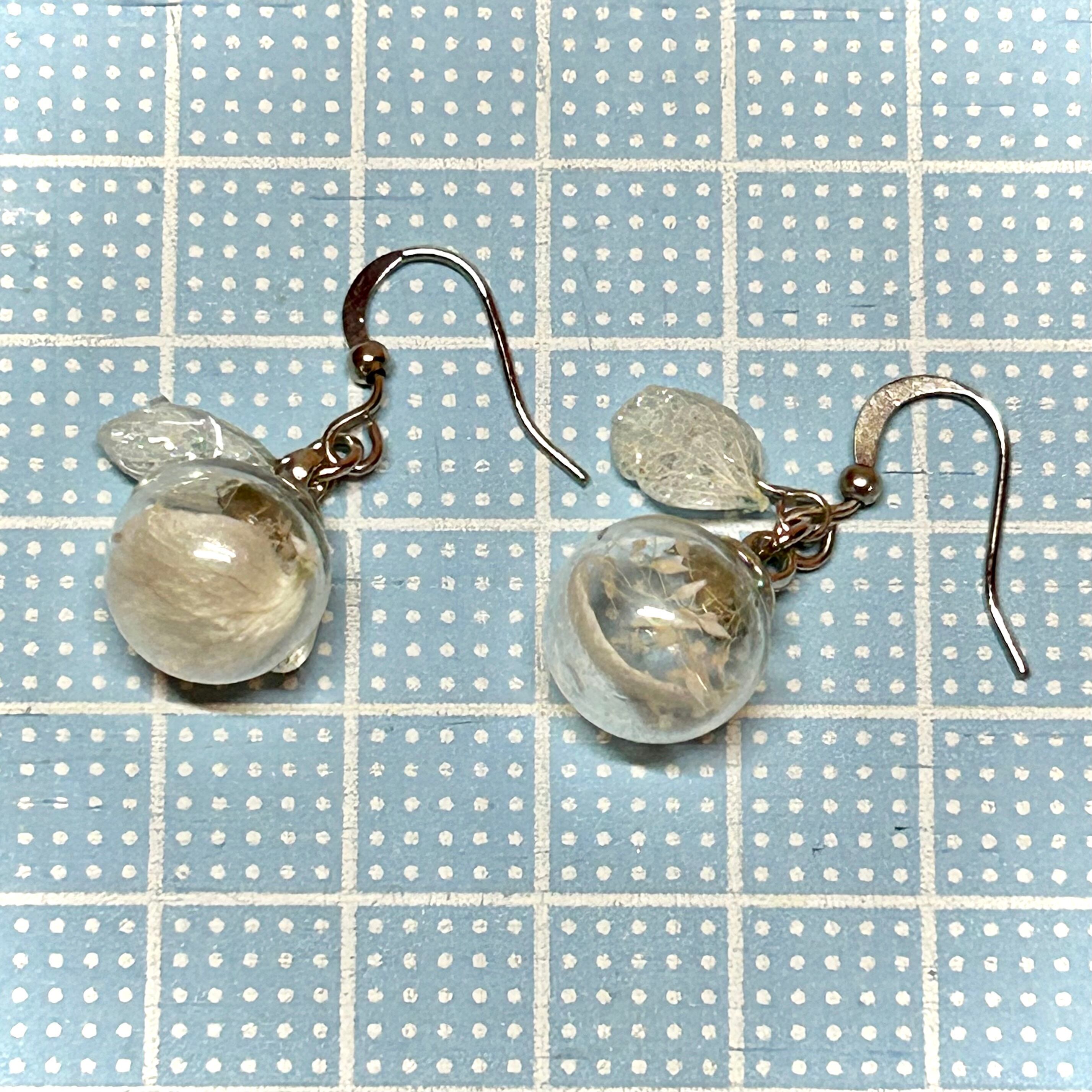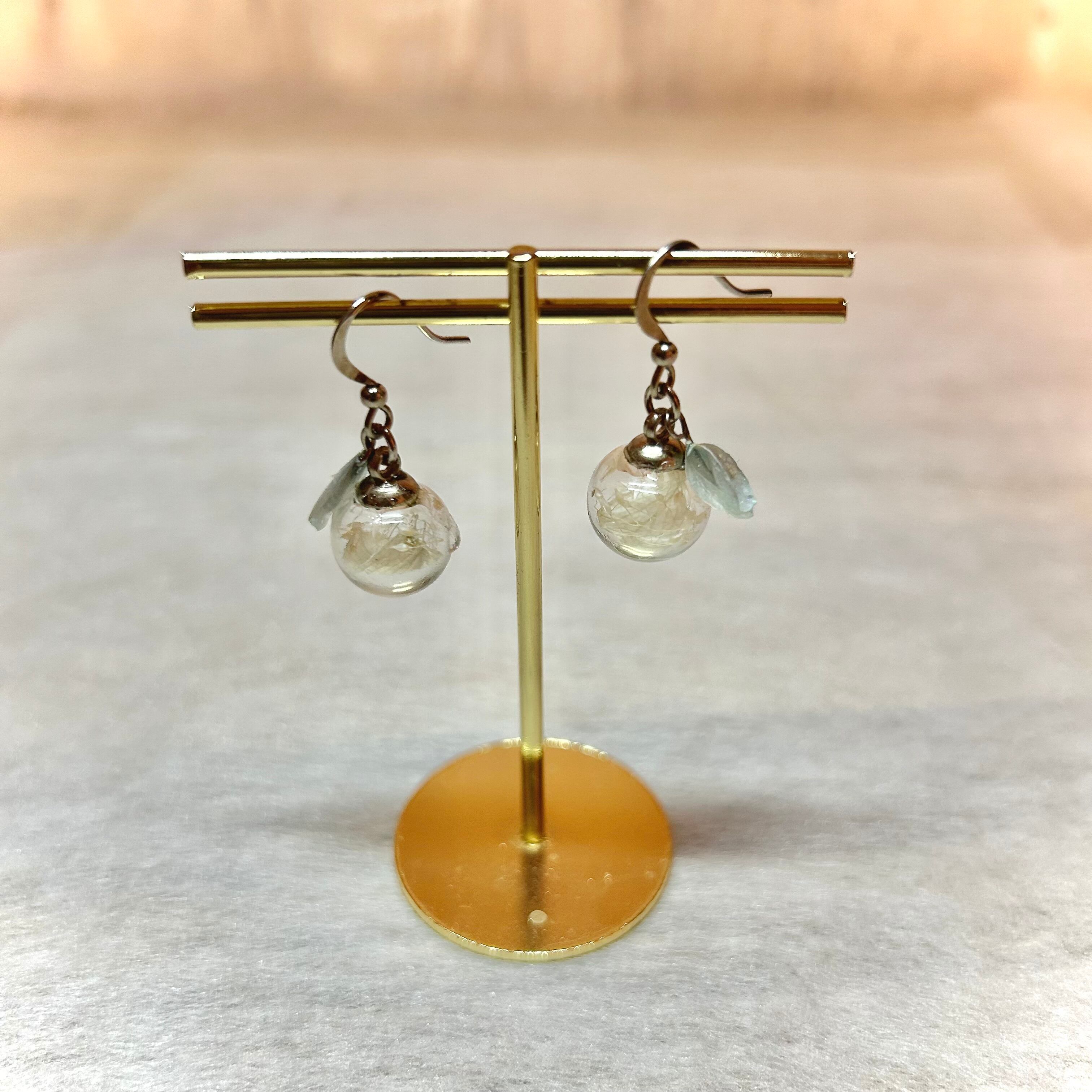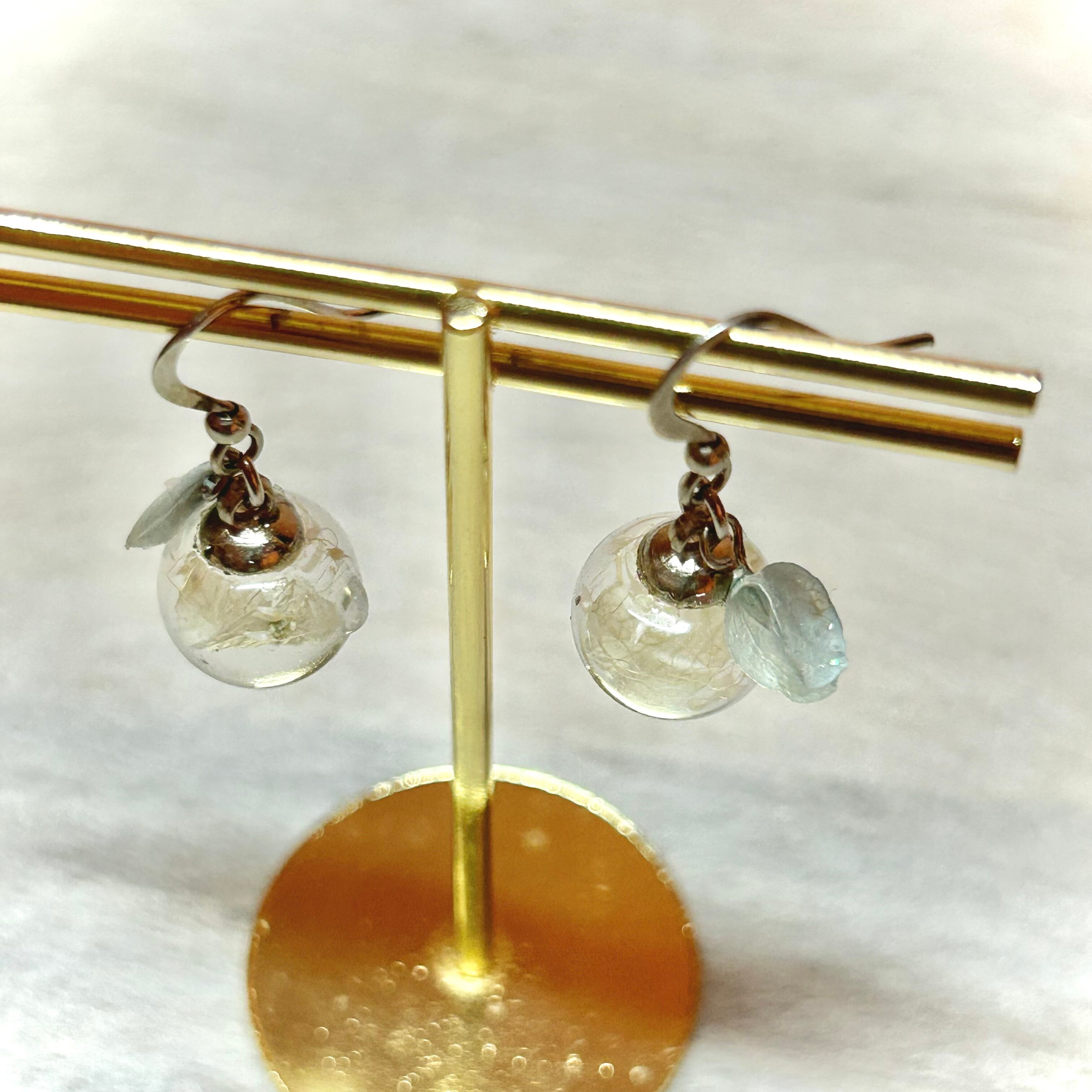 ガラスドームの外側にも、ドライフラワーが1つ揺れて、なんとなくアンティークな風合いがポイント❣