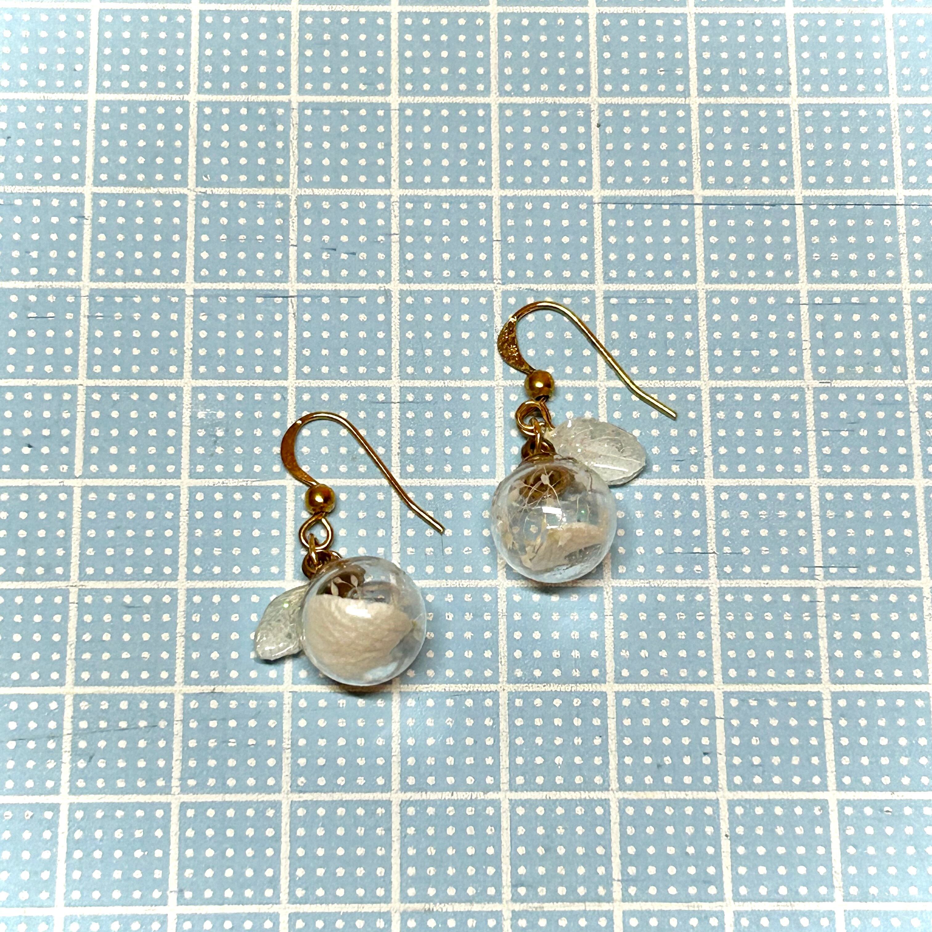 約12ミリのガラスドームの中に、ドライフラワーを閉じ込めました