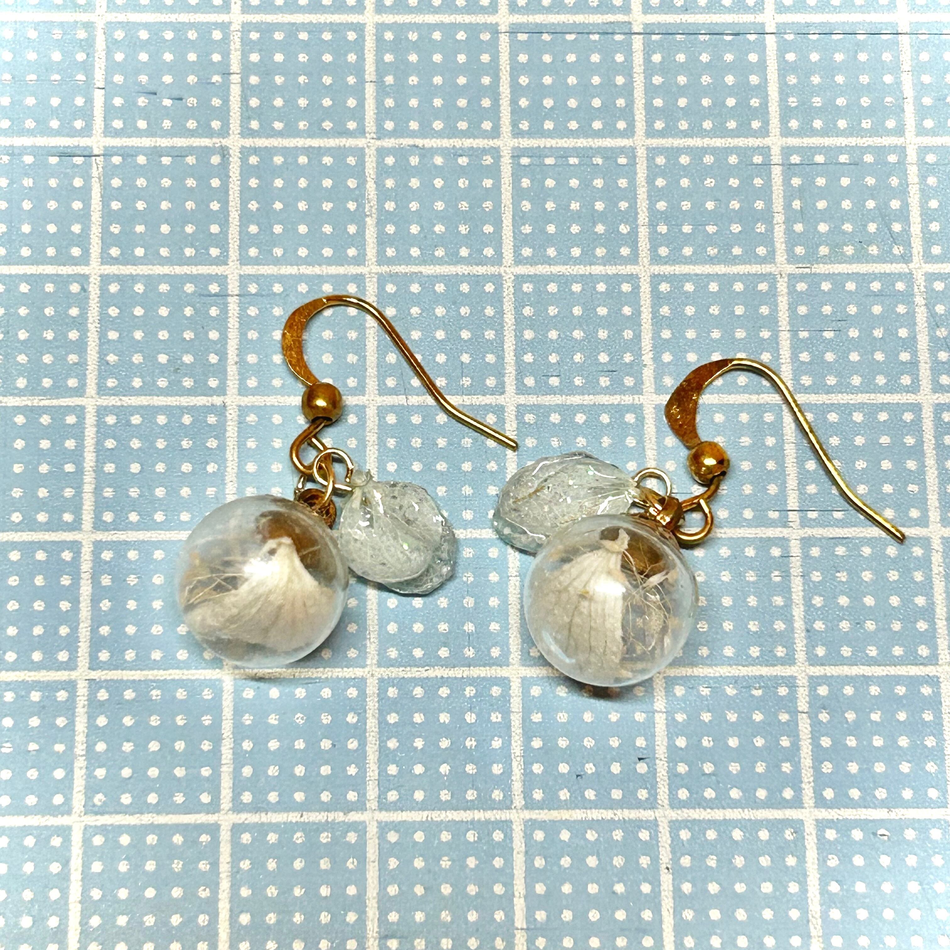 約12ミリのガラスドームの中に、ドライフラワーを閉じ込めました