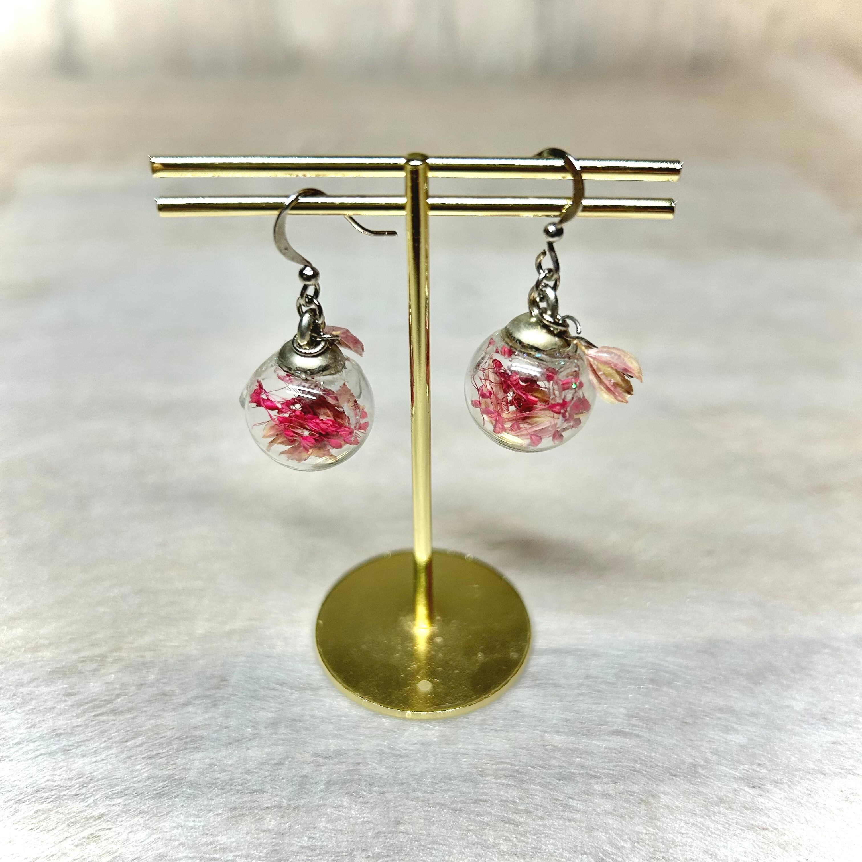 約16ミリのガラスドームの中に、ドライフラワーを閉じ込めました