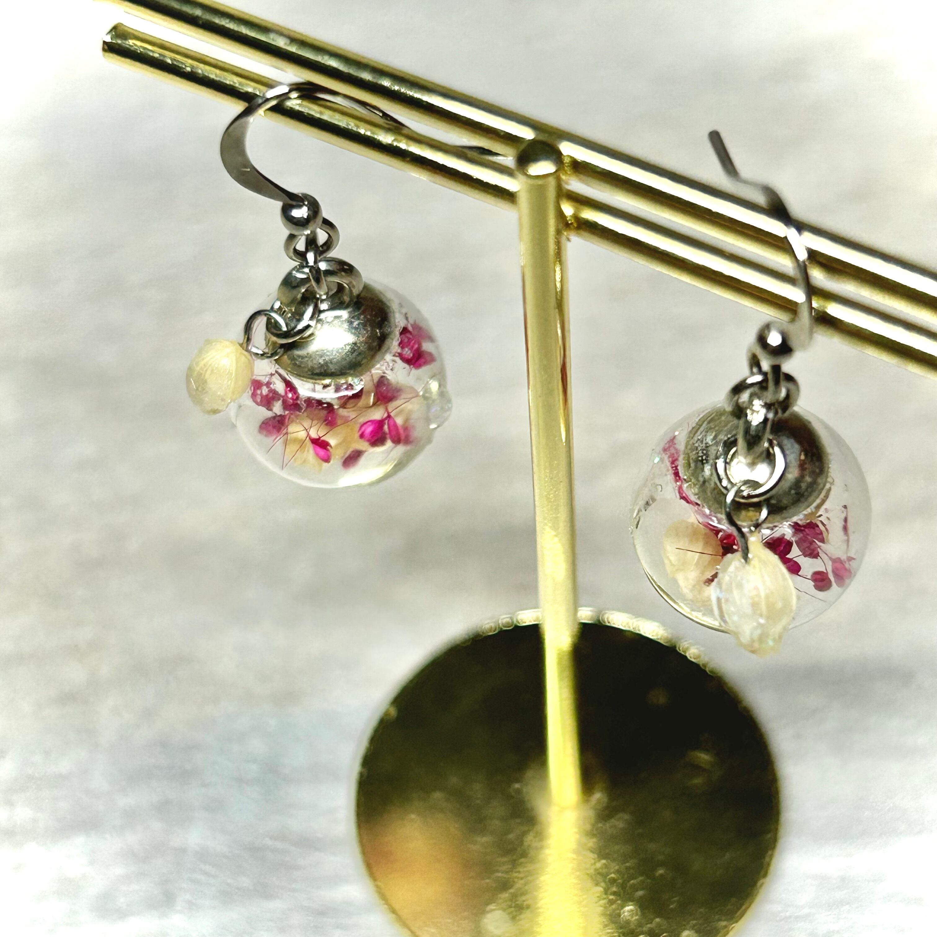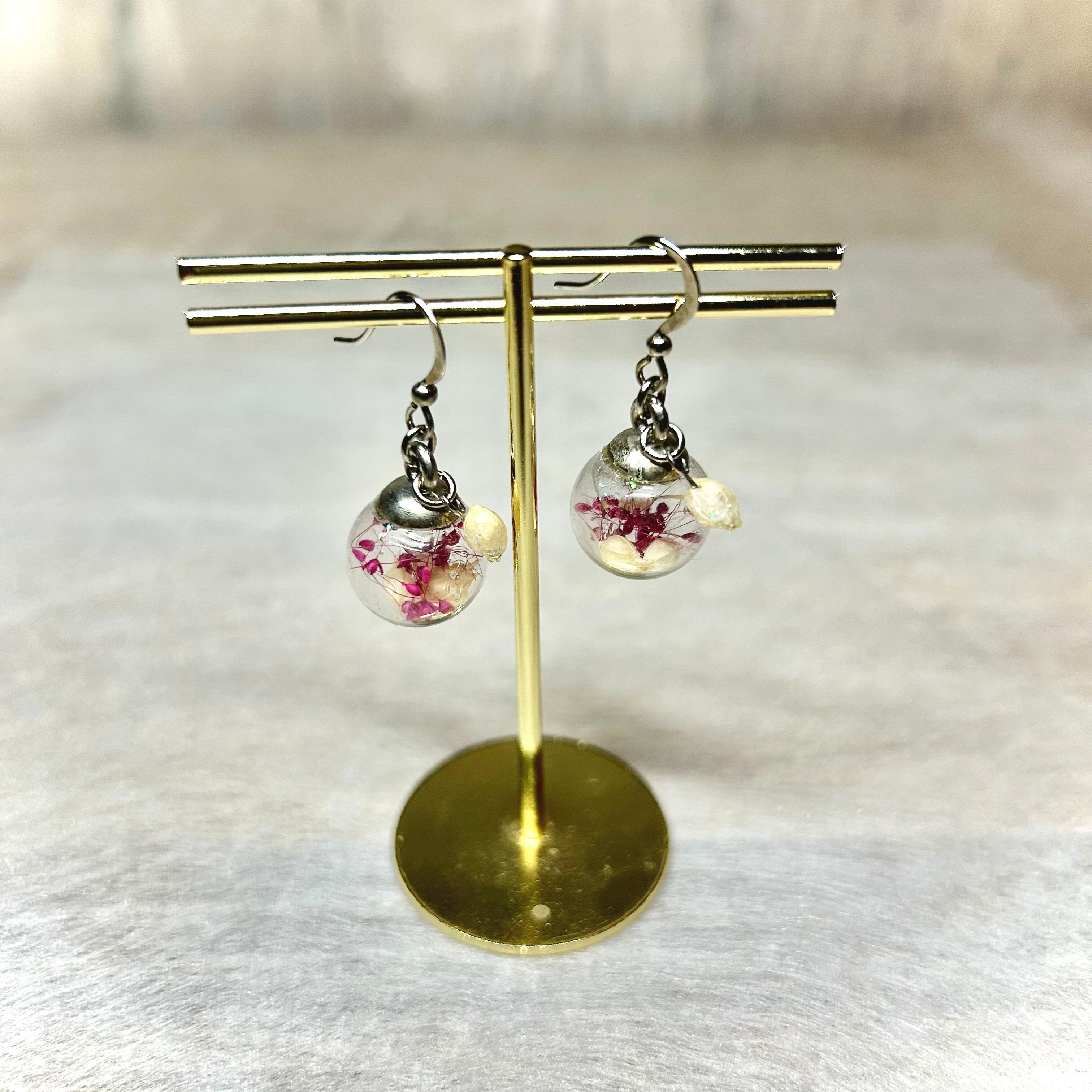 約14ミリのガラスドームの中に、ドライフラワーを閉じ込めました