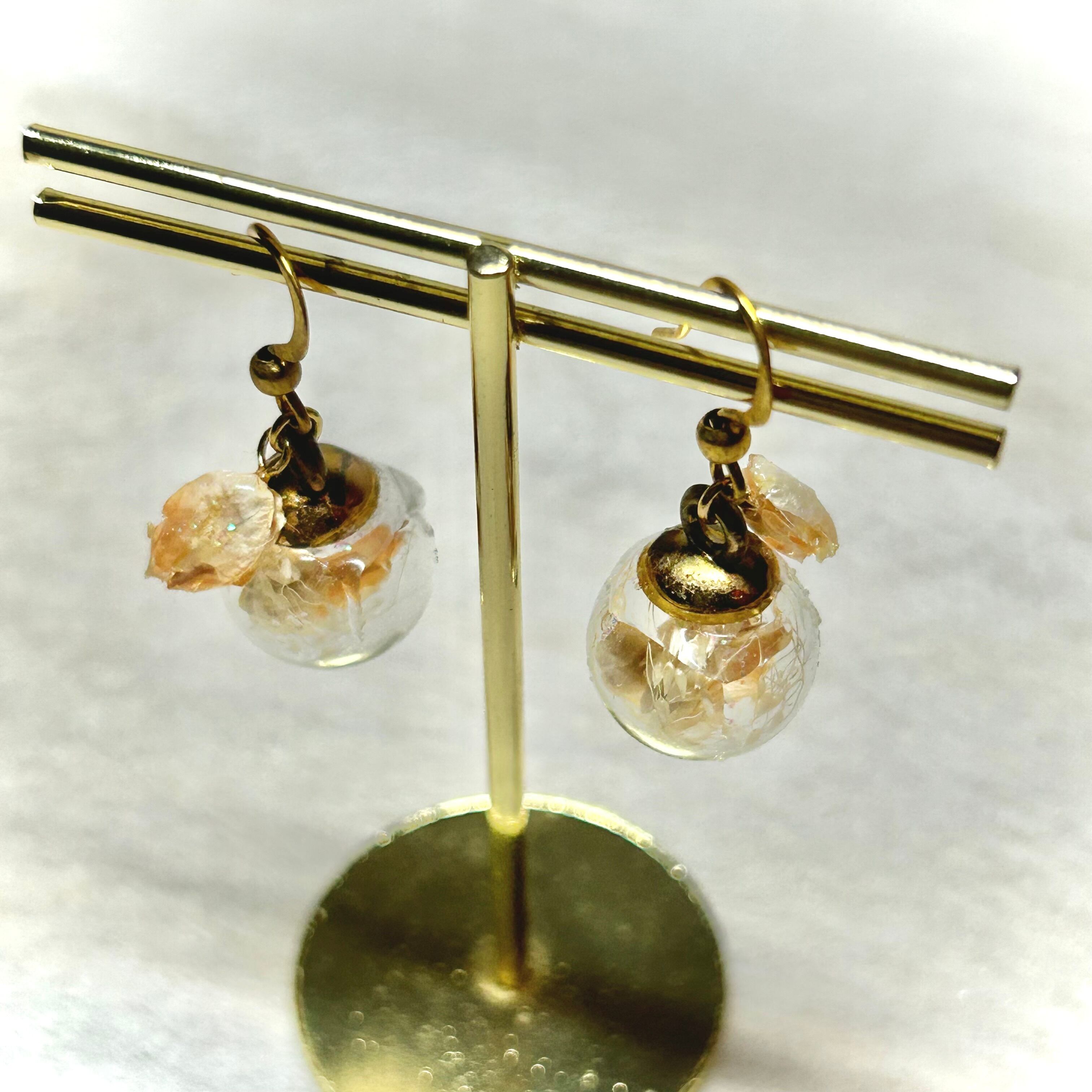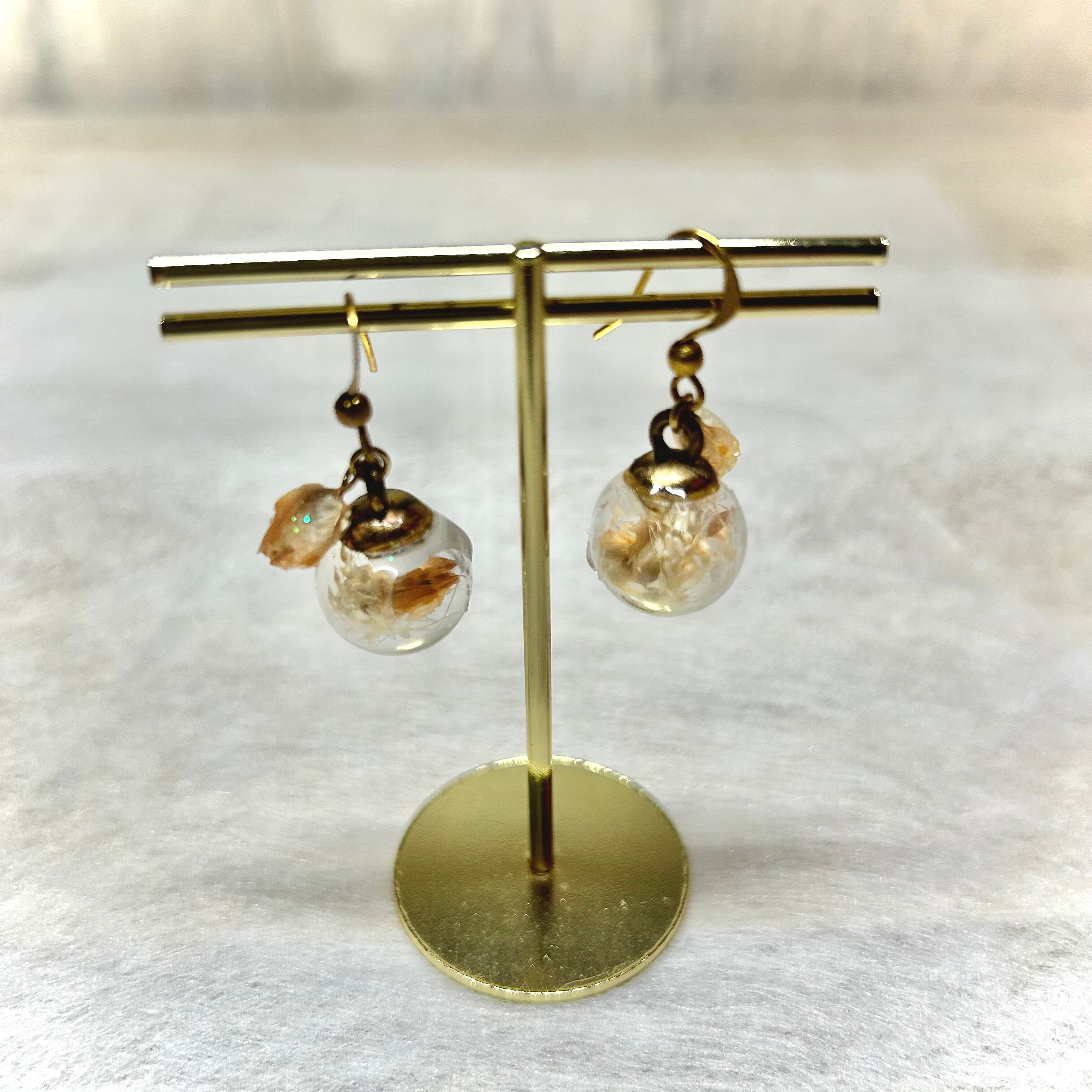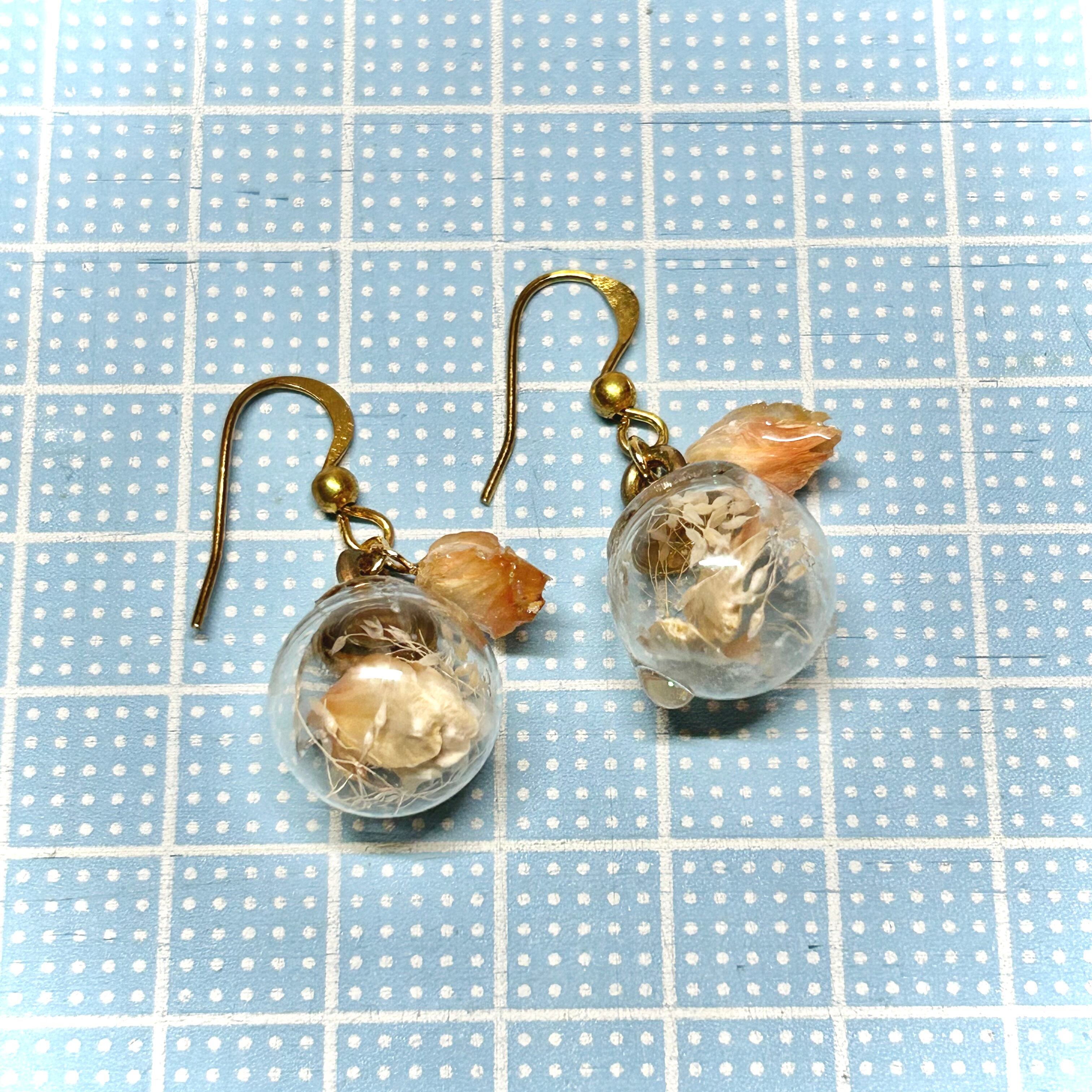 約14ミリのガラスドームの中に、ドライフラワーを閉じ込めました