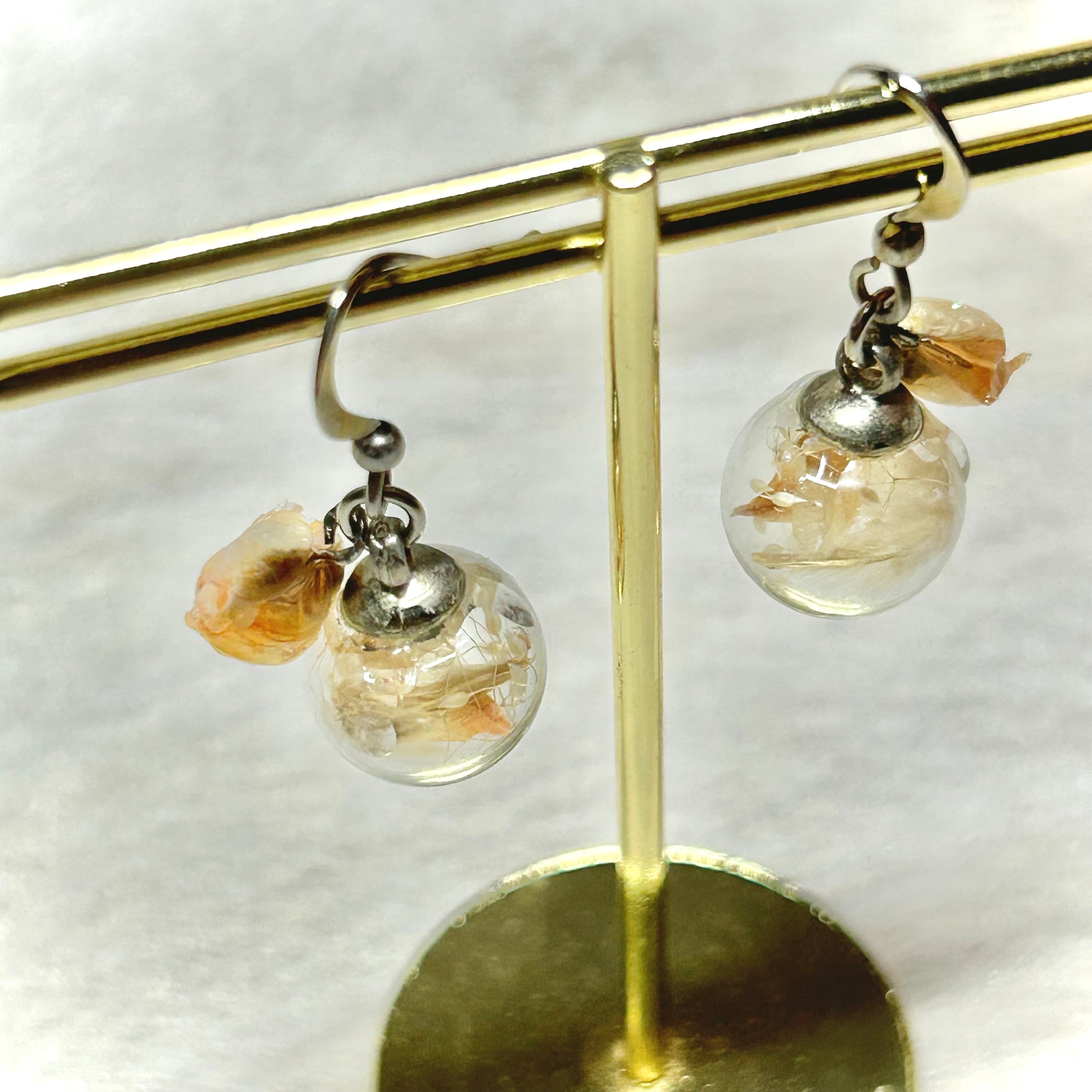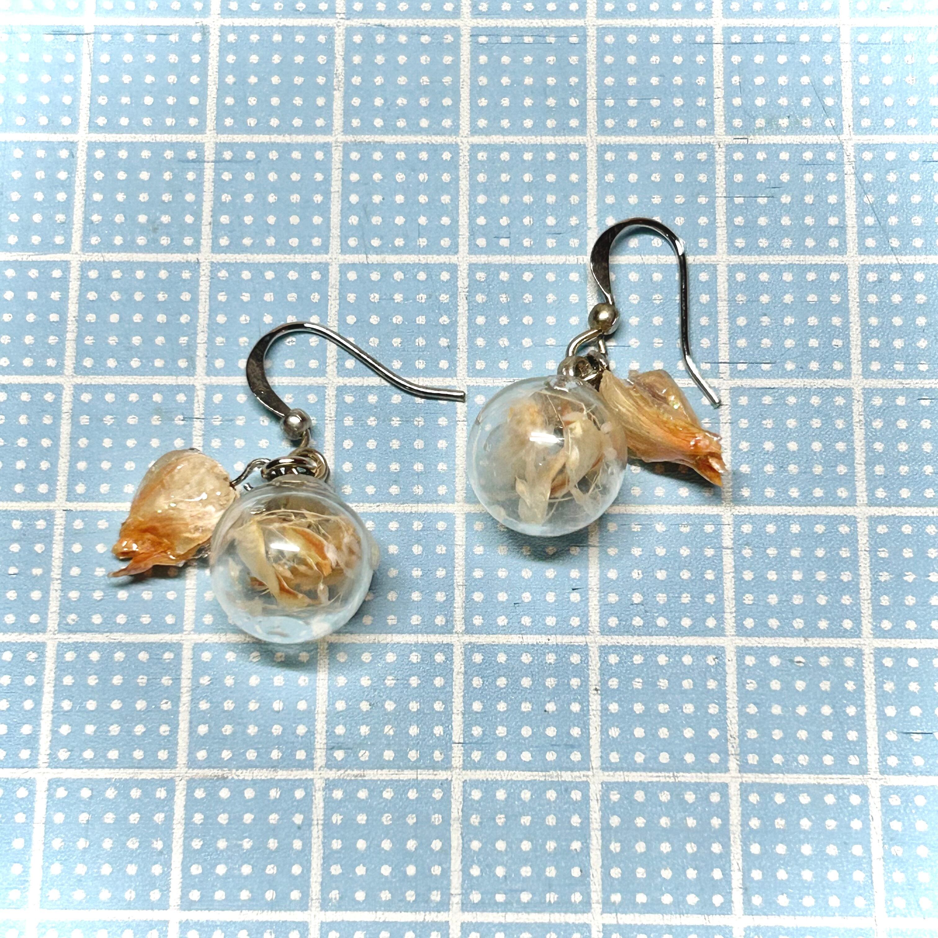 約12ミリのガラスドームの中に、ドライフラワーを閉じ込めました