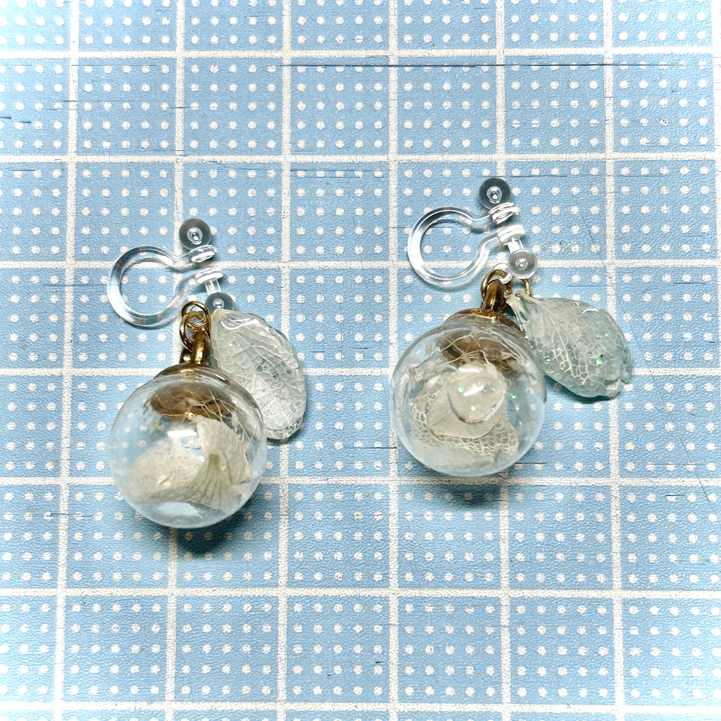 約14ミリのガラスドームの中に、ドライフラワーを閉じ込めました