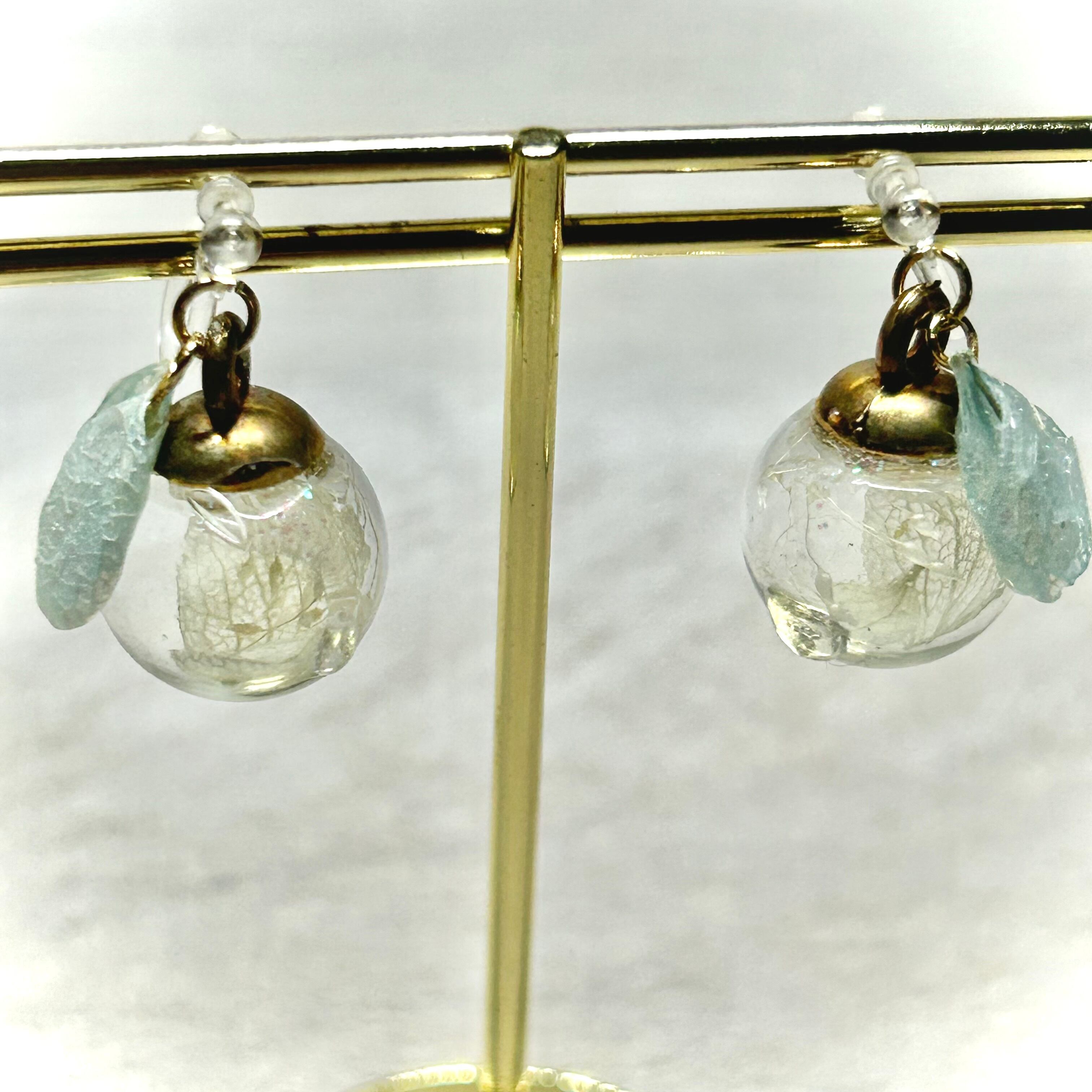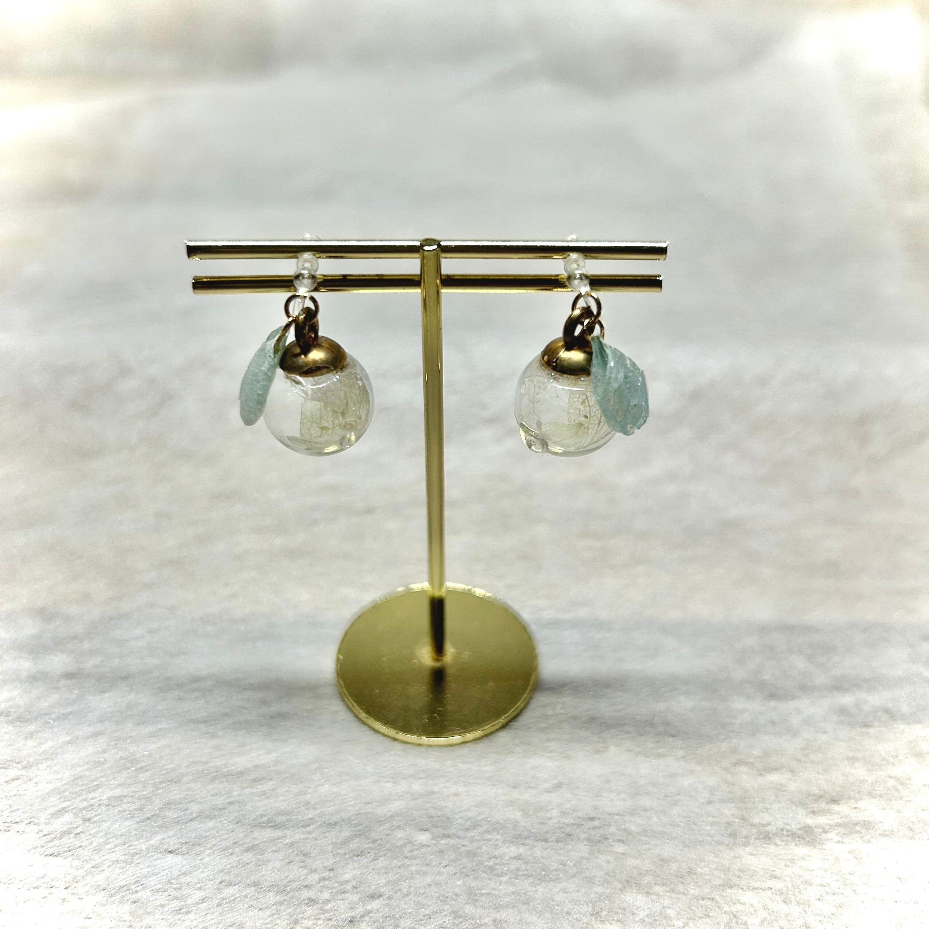 アンティーク風フラワードームイヤリング(ブルーNo.2)