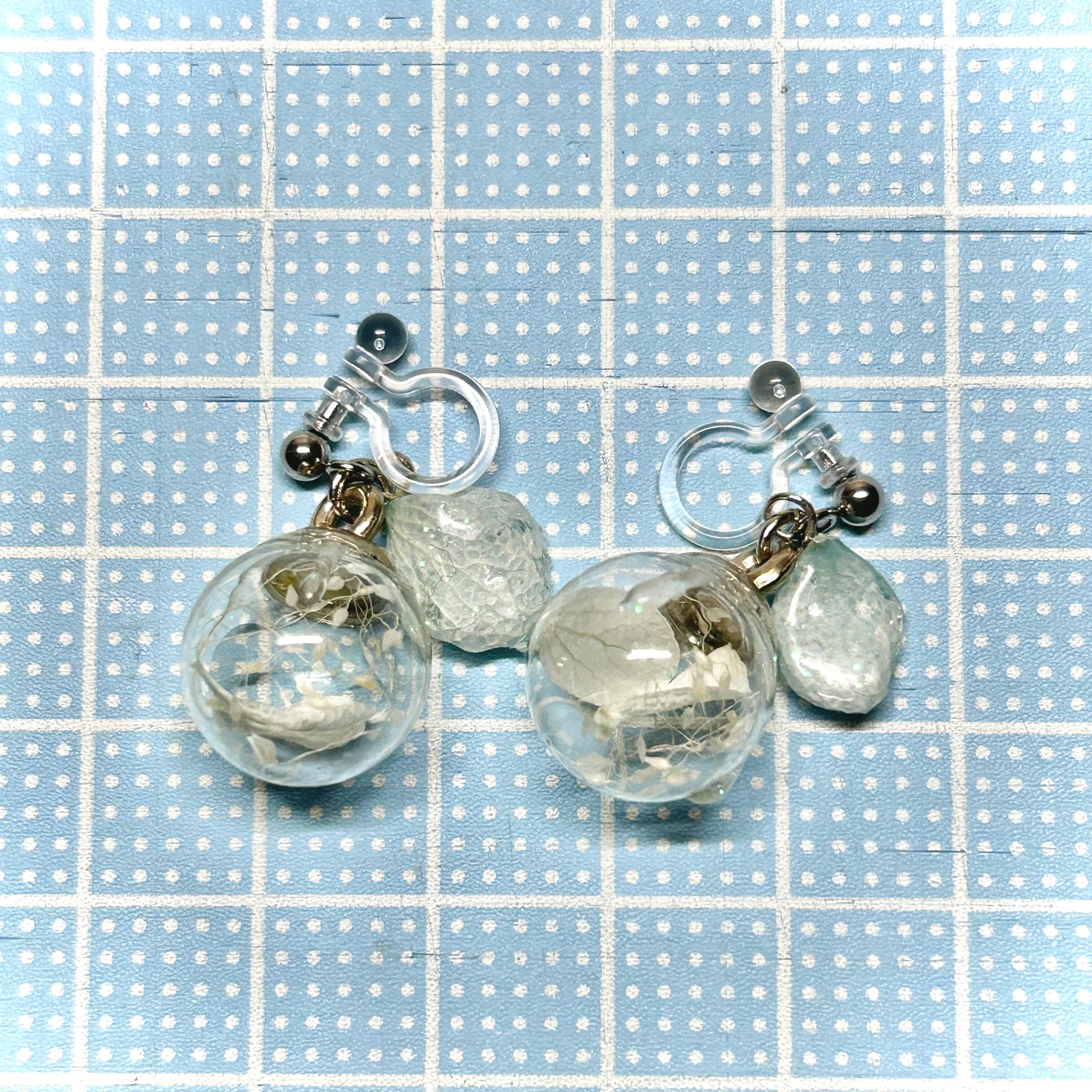 約14ミリのガラスドームの中に、ドライフラワーを閉じ込めました