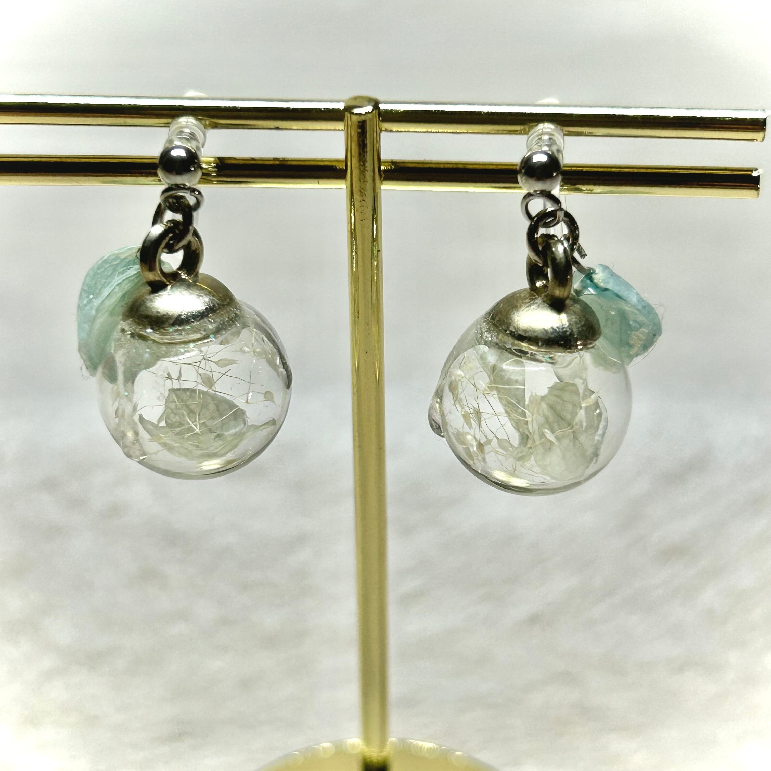アンティーク風フラワードームイヤリング(ブルーNo.3)