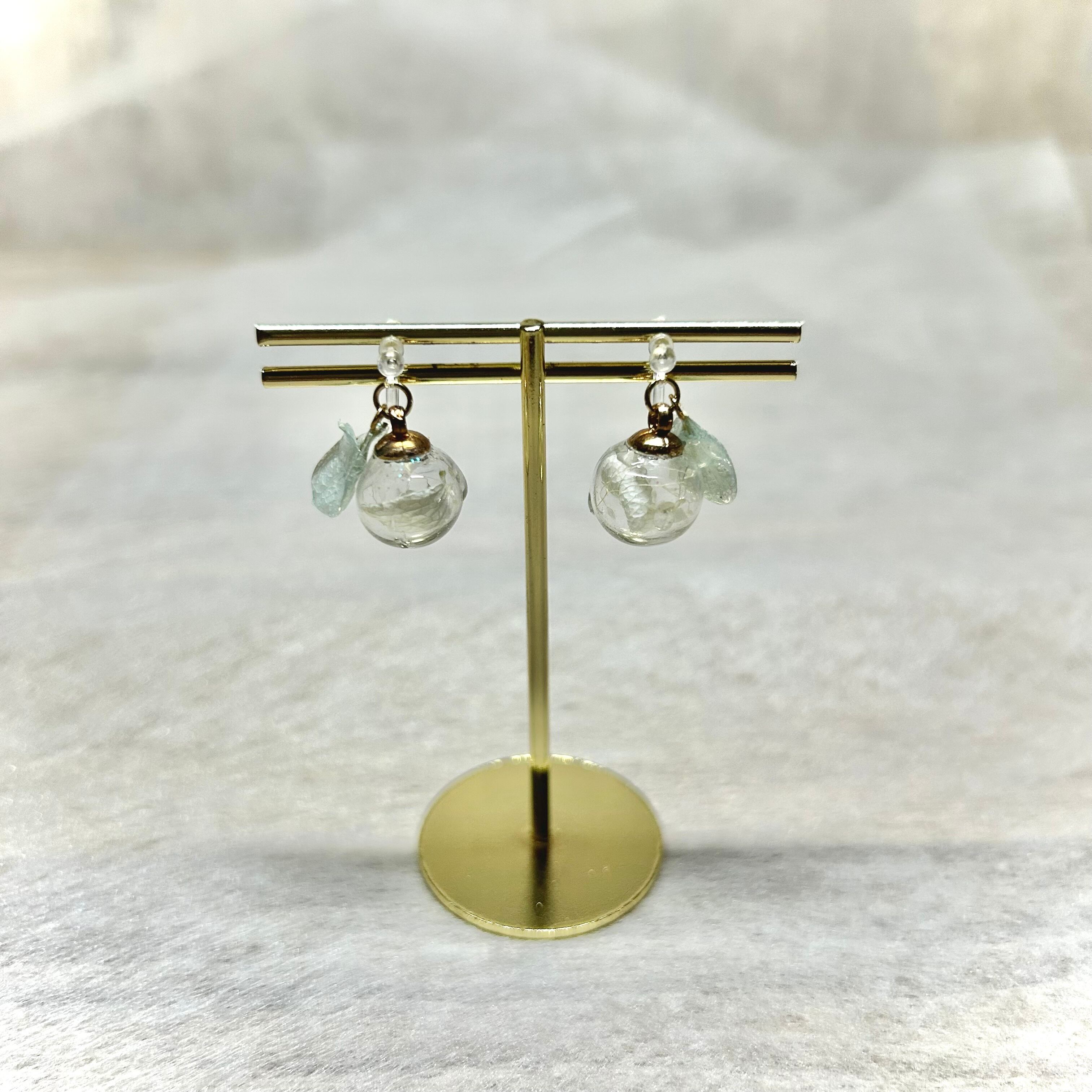 約12ミリのガラスドームの中に、ドライフラワーを閉じ込めました