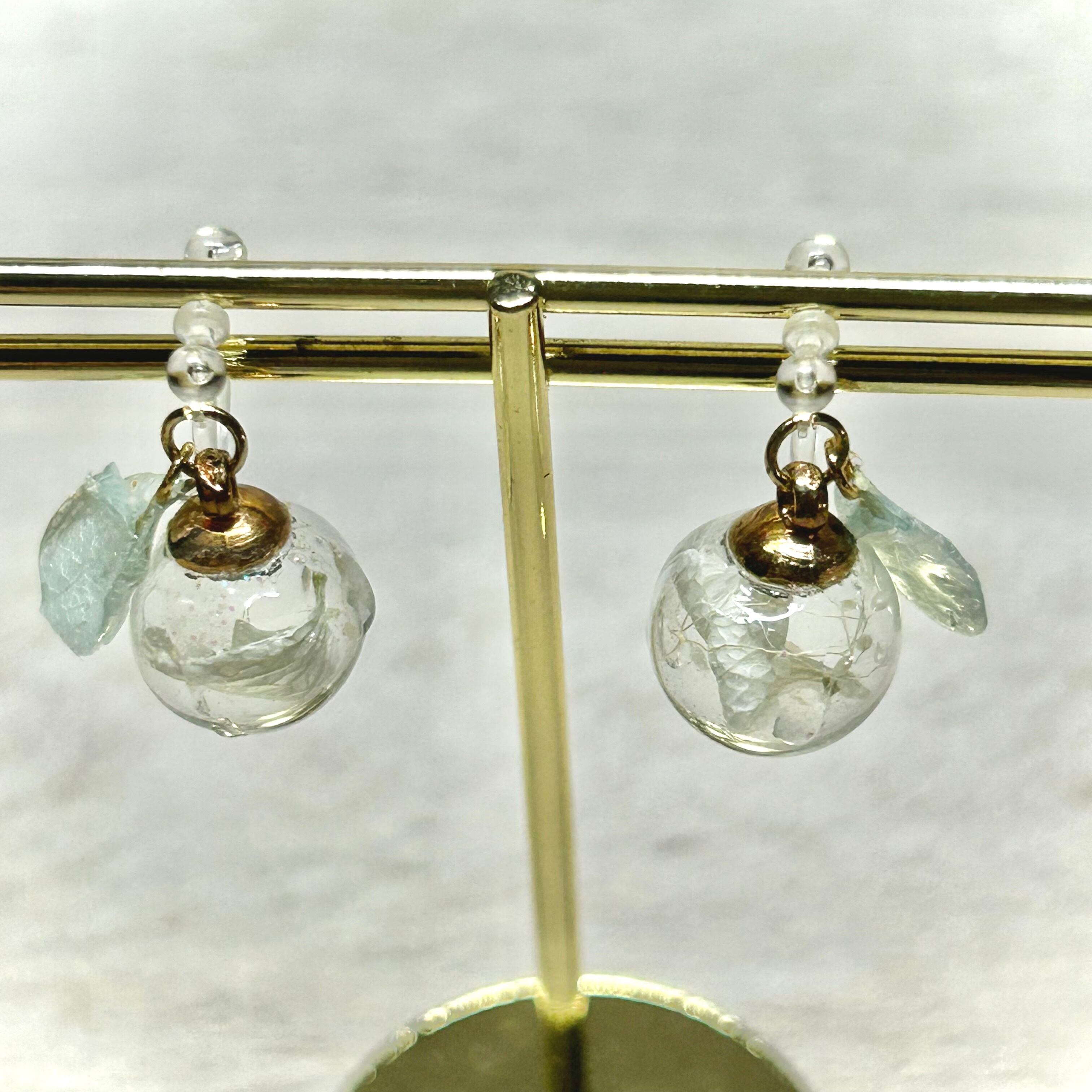 ガラスドームの外側にも、ドライフラワーが1つ揺れて、なんとなくアンティークな風合いがポイント❣