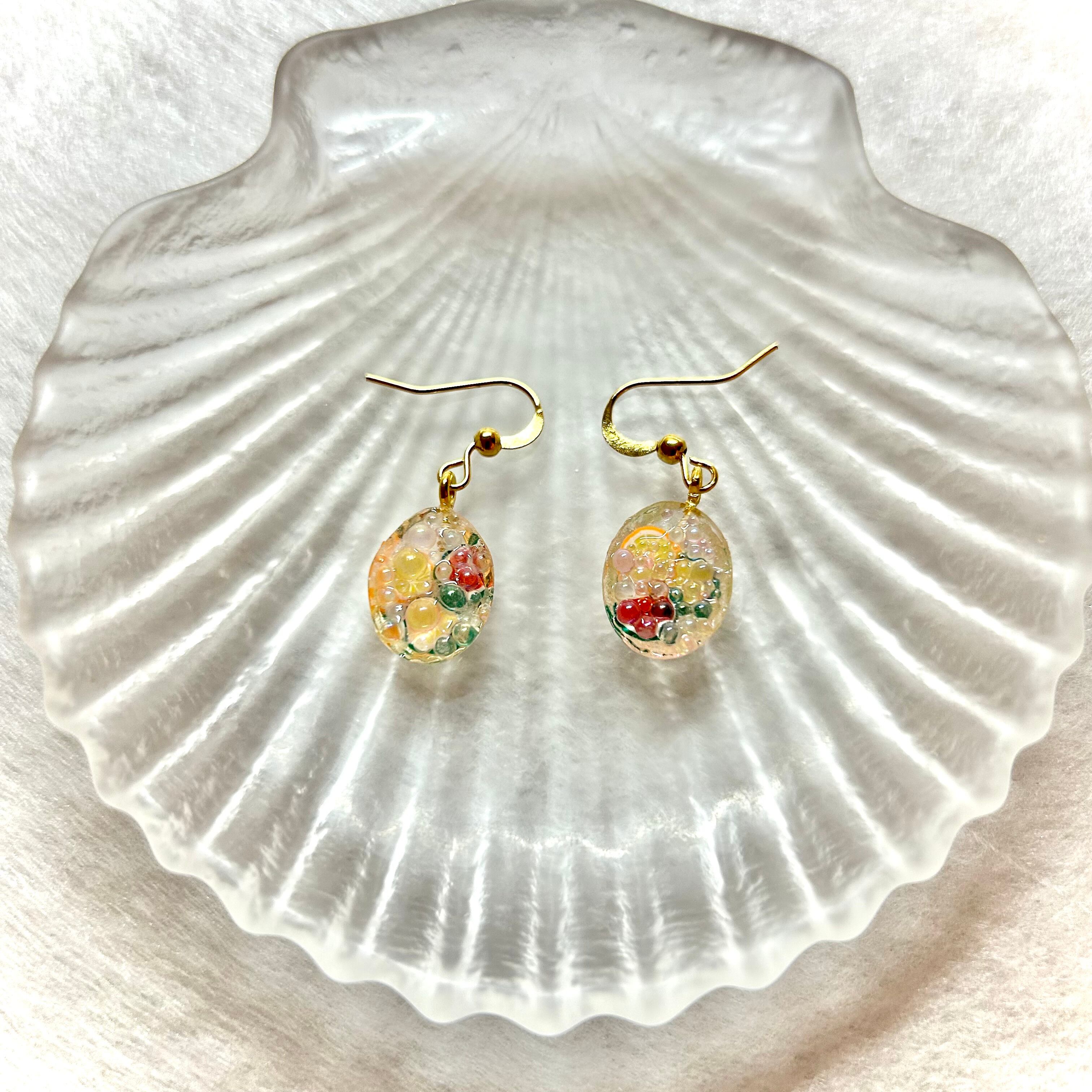 その名の通り、誰もが子供の頃を思い出す、ドロップスモチーフのピアス
