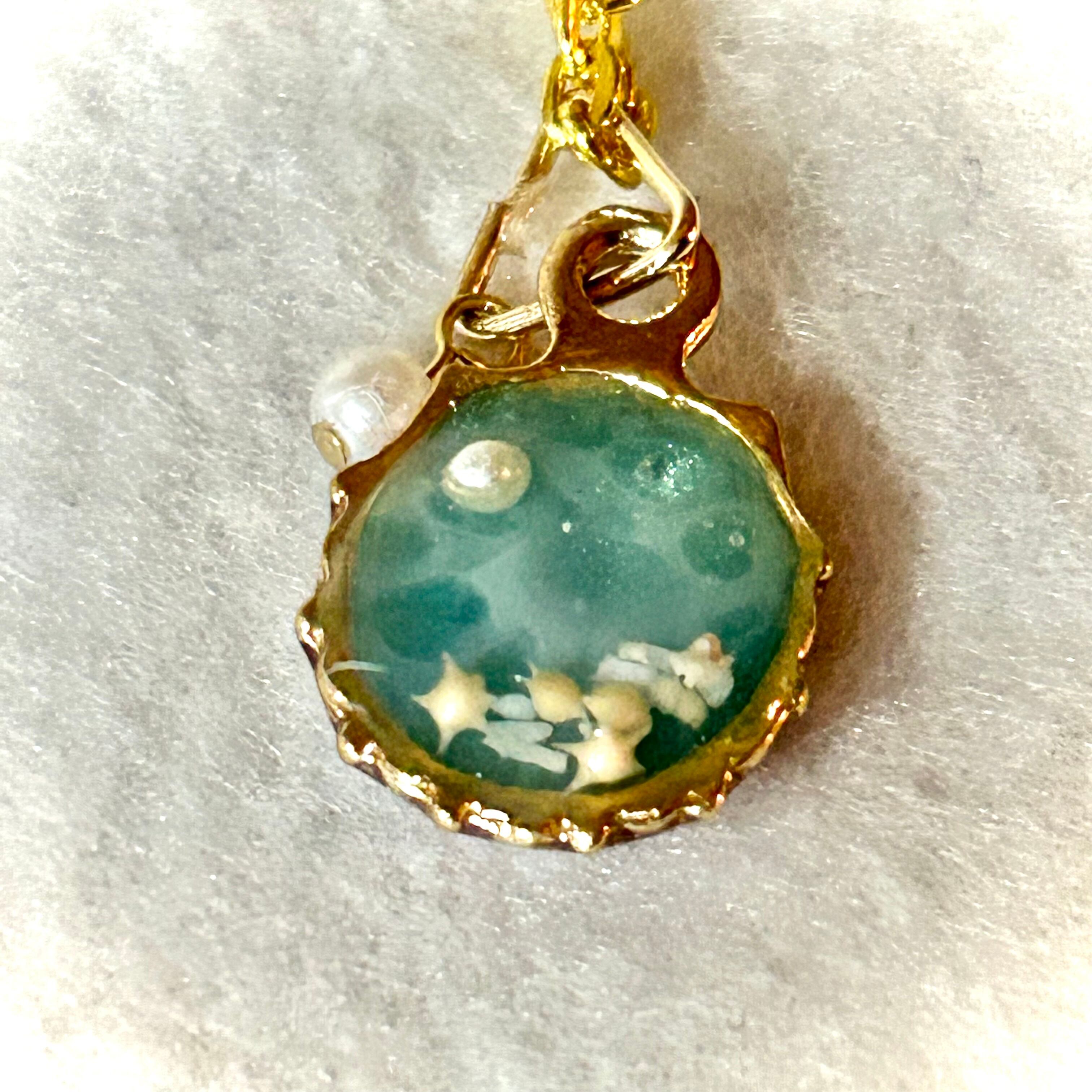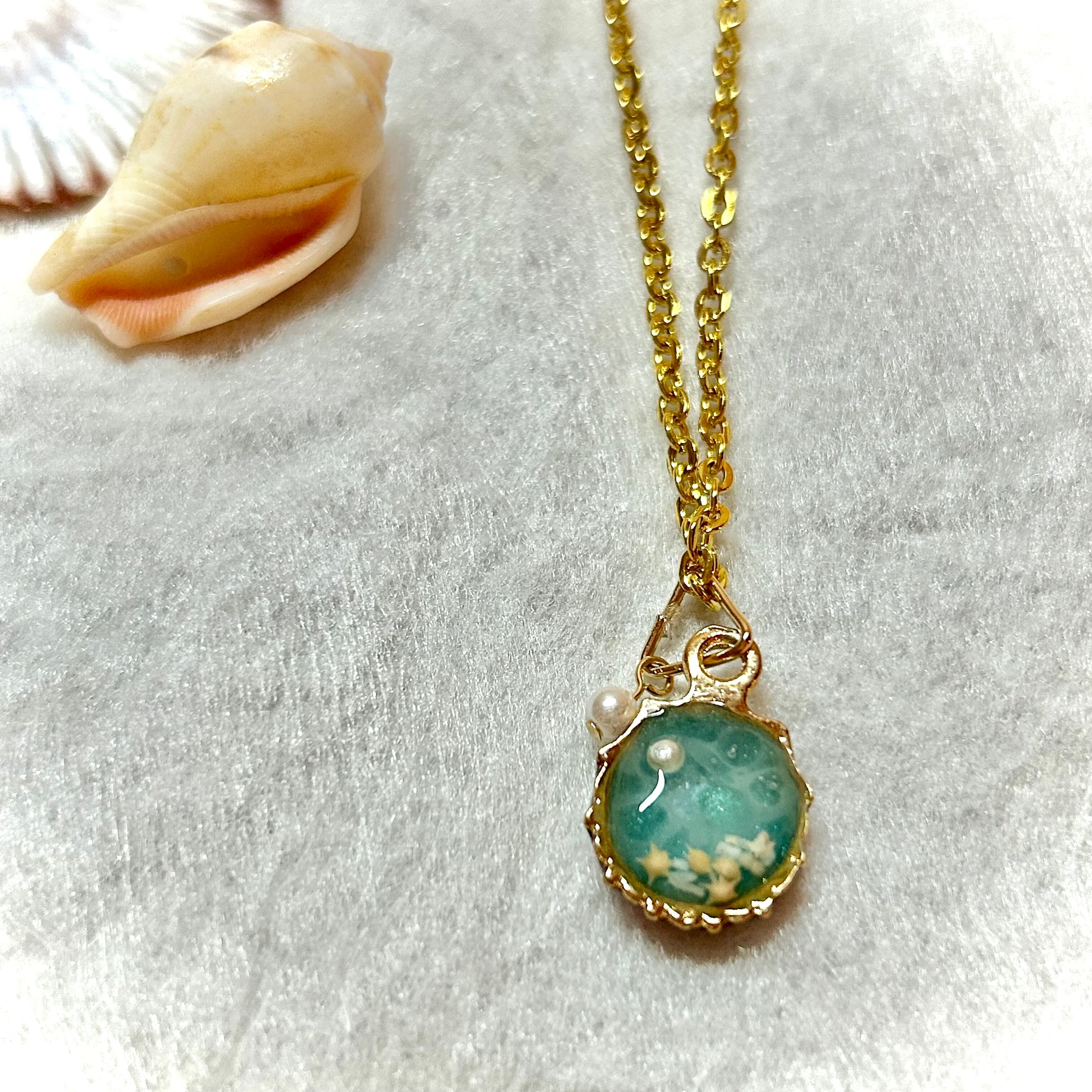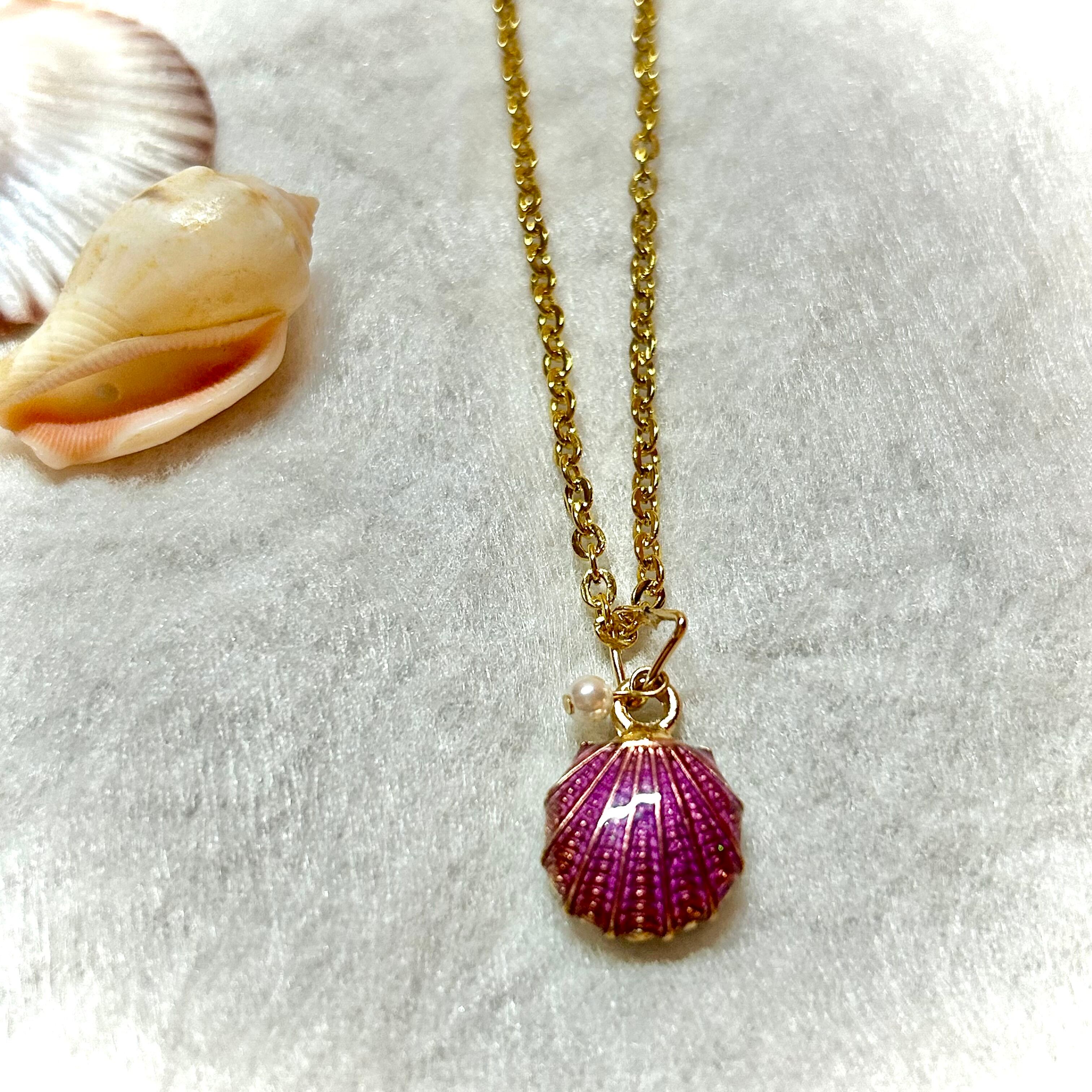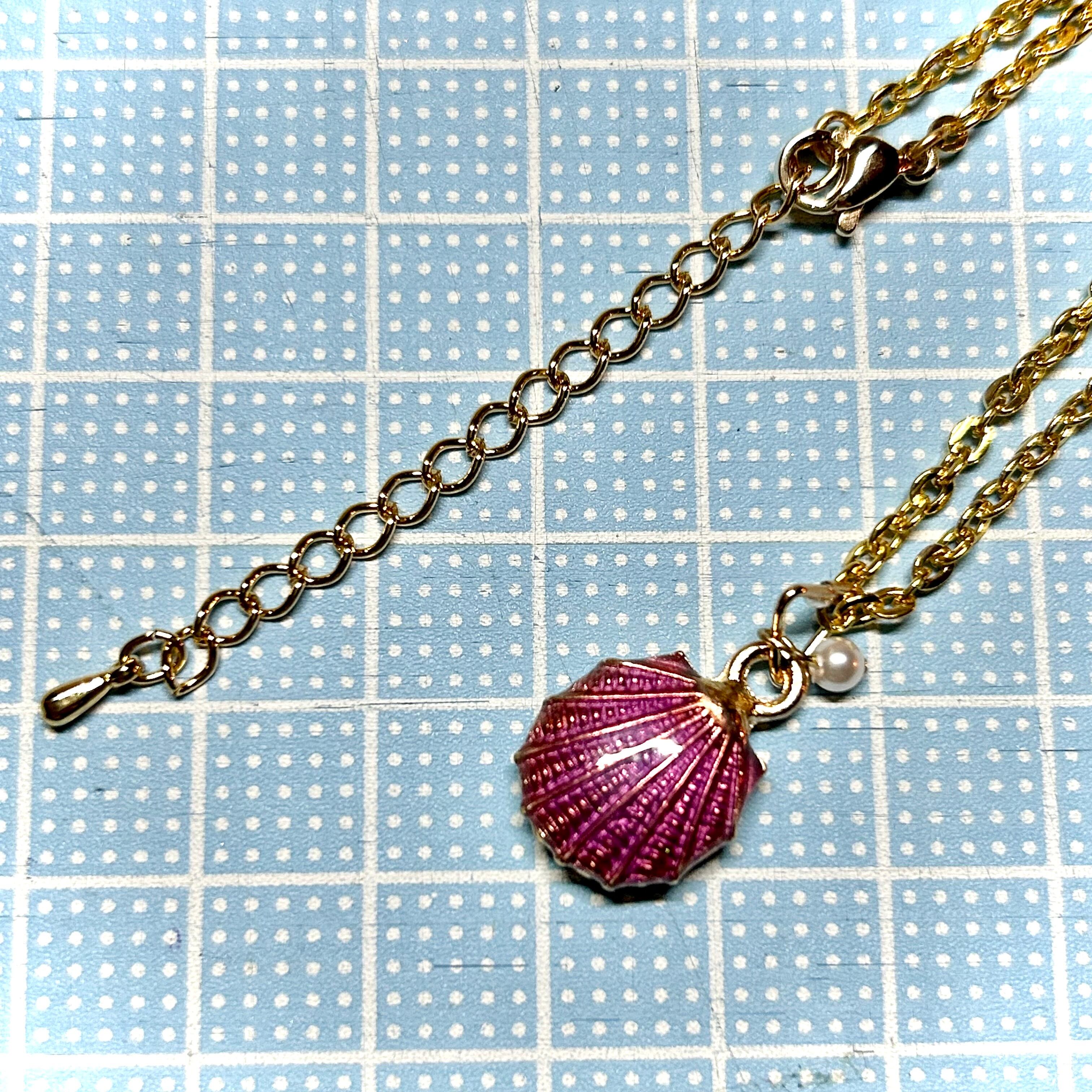 チェーンと貝殻モチーフを繋いでいるのは、丸カンではなくて、三角カン。テトラポットのイメージを思わせるデザインとなっております。