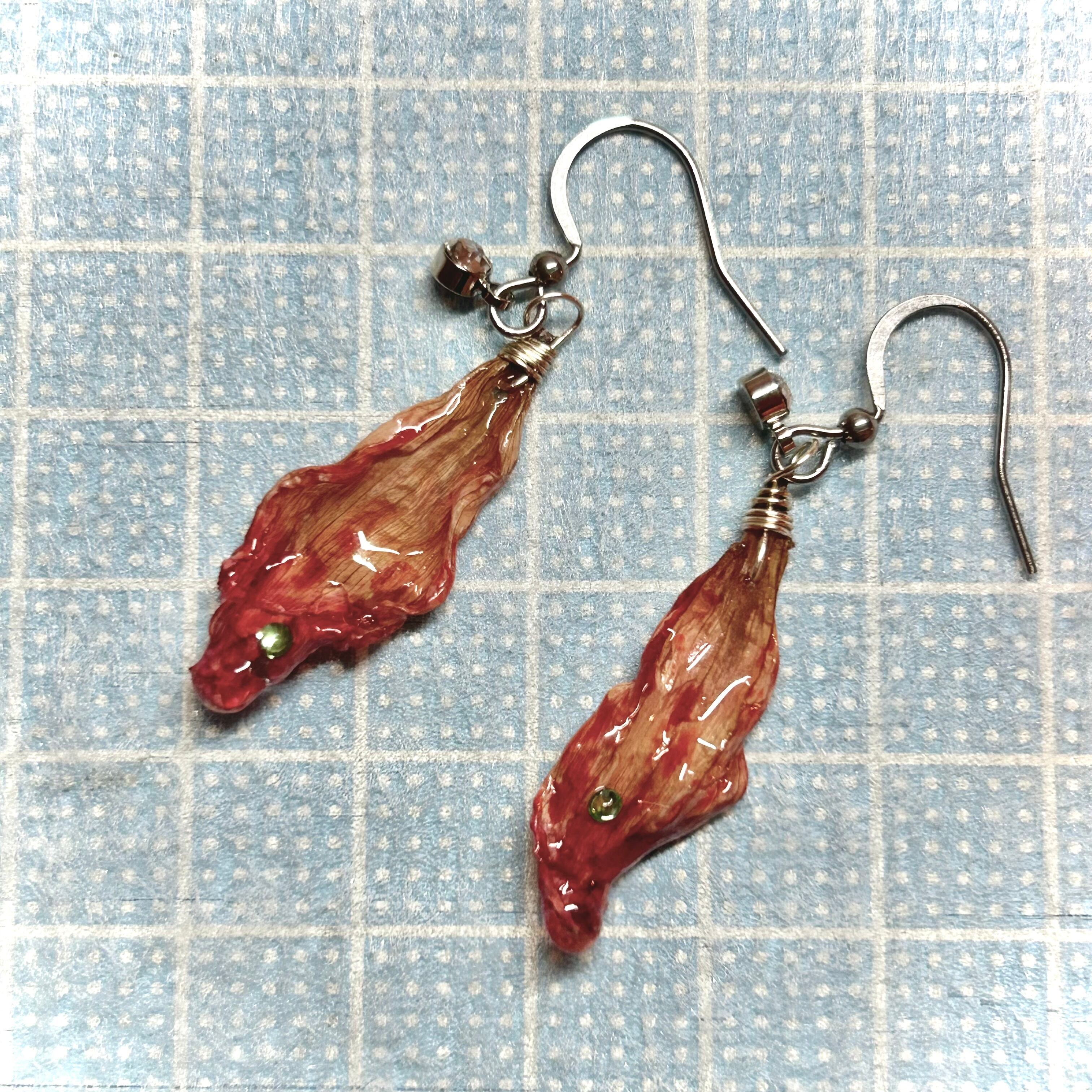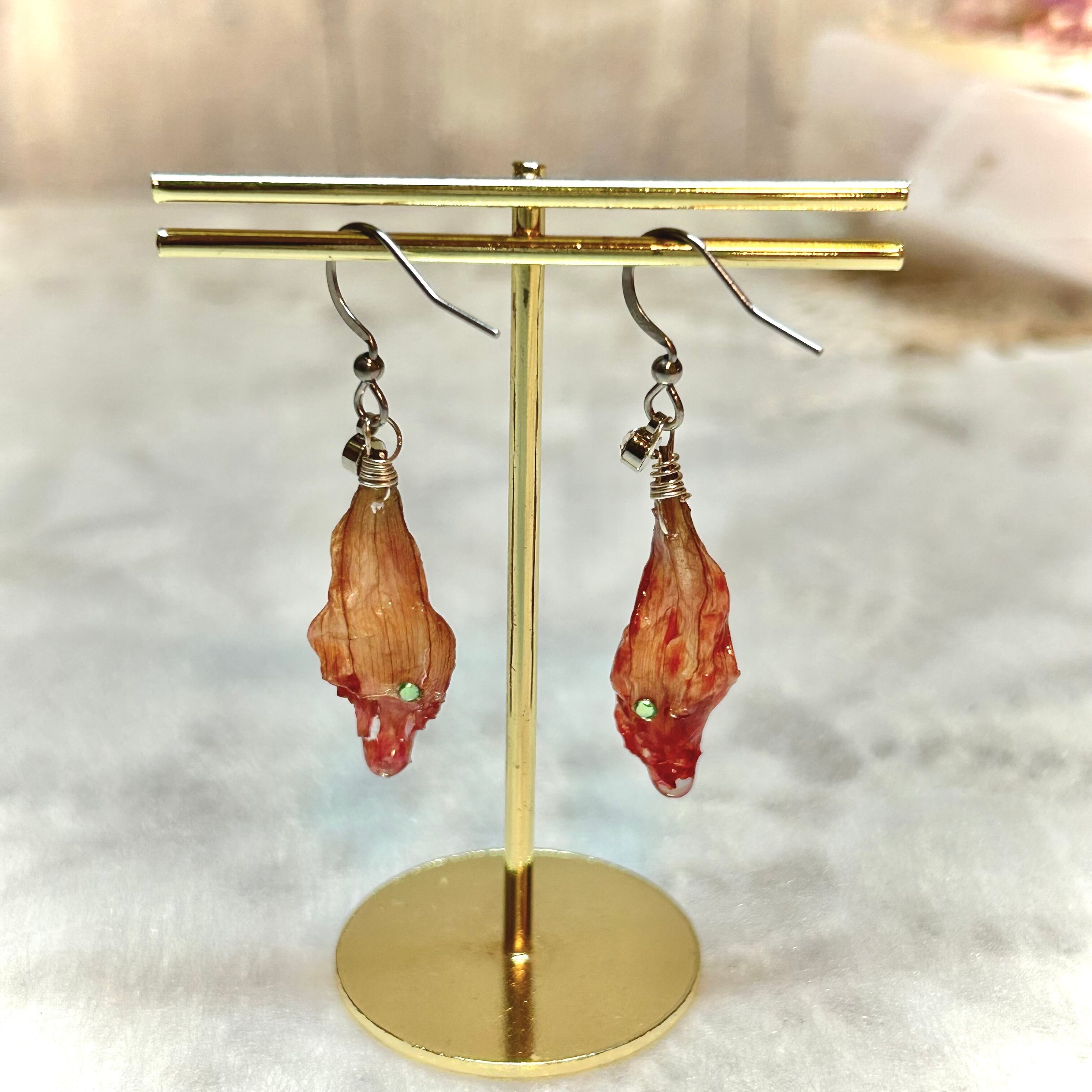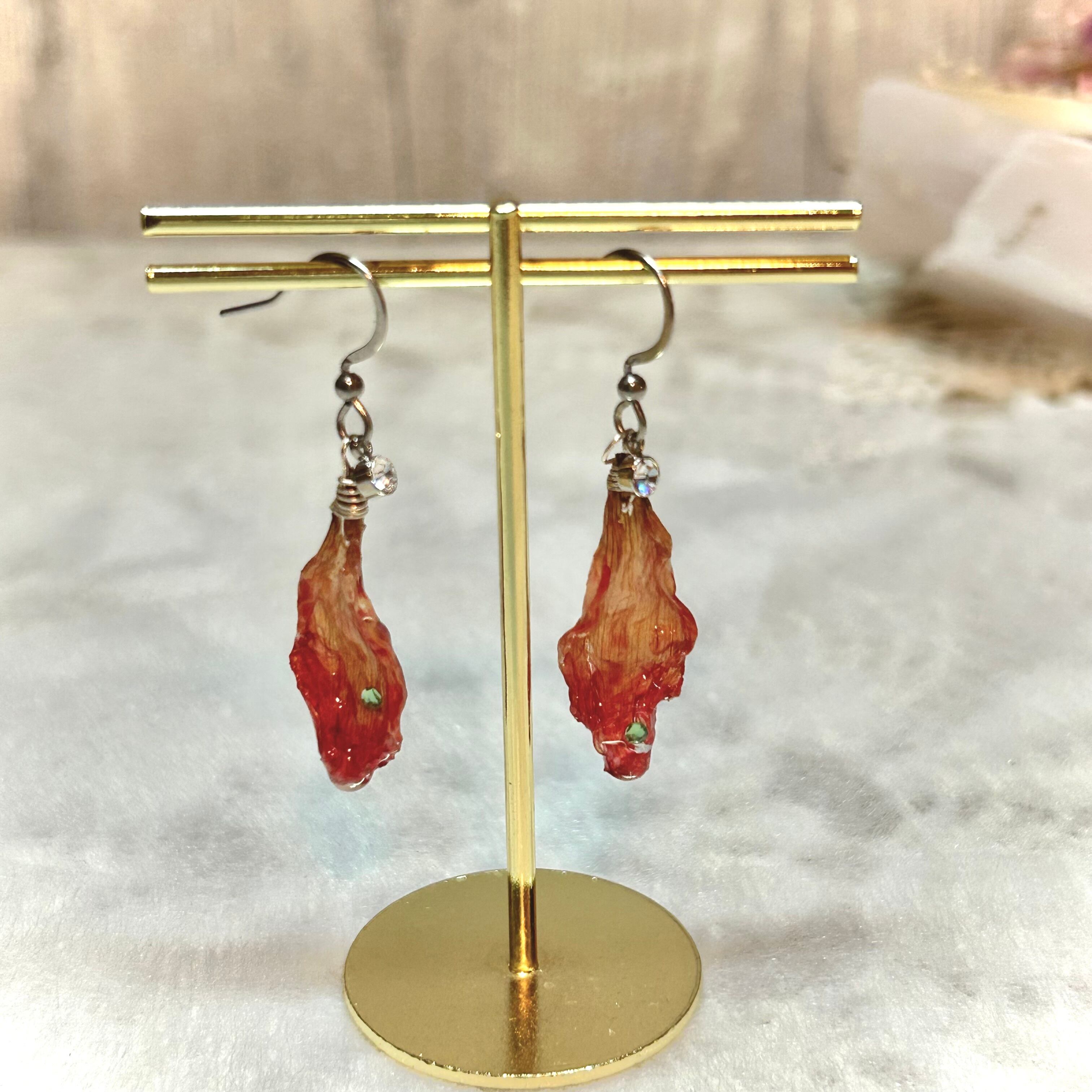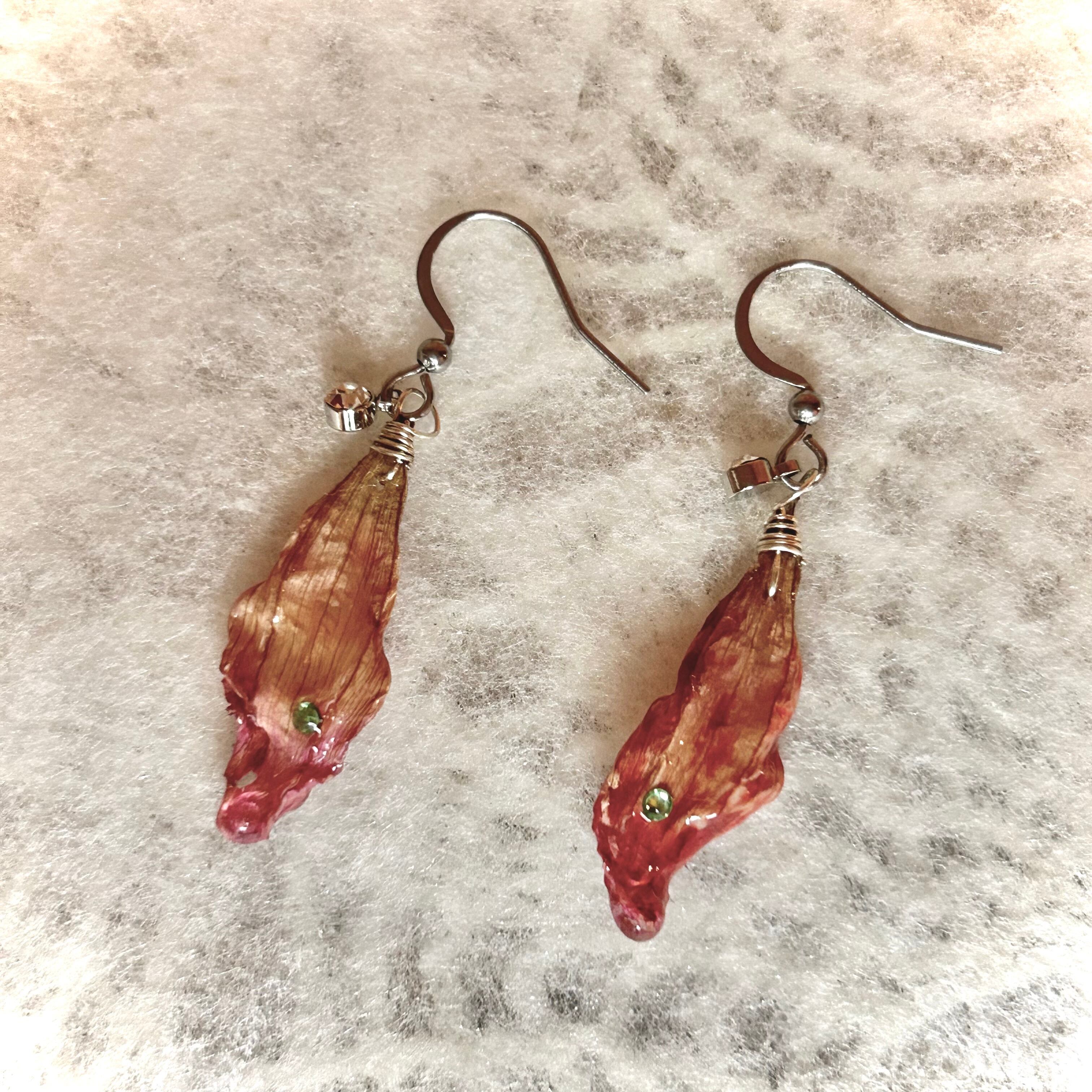 ダリアの花びらに、ミントグリーンのビジューが輝く花びらピアス