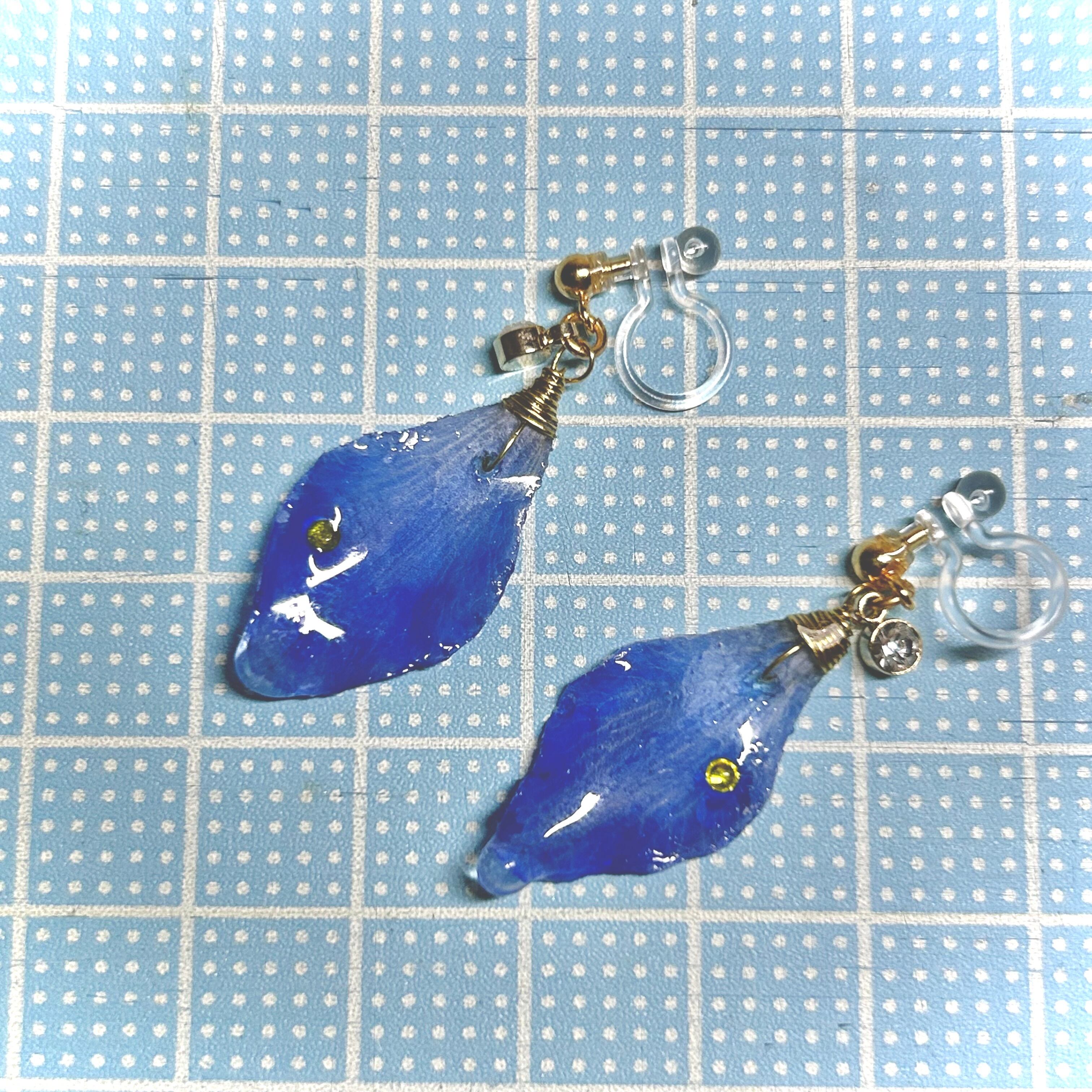 デルフィニウムの花びらに、パインイエローのビジューが輝く花びらイヤリング(ノンホールピアス)