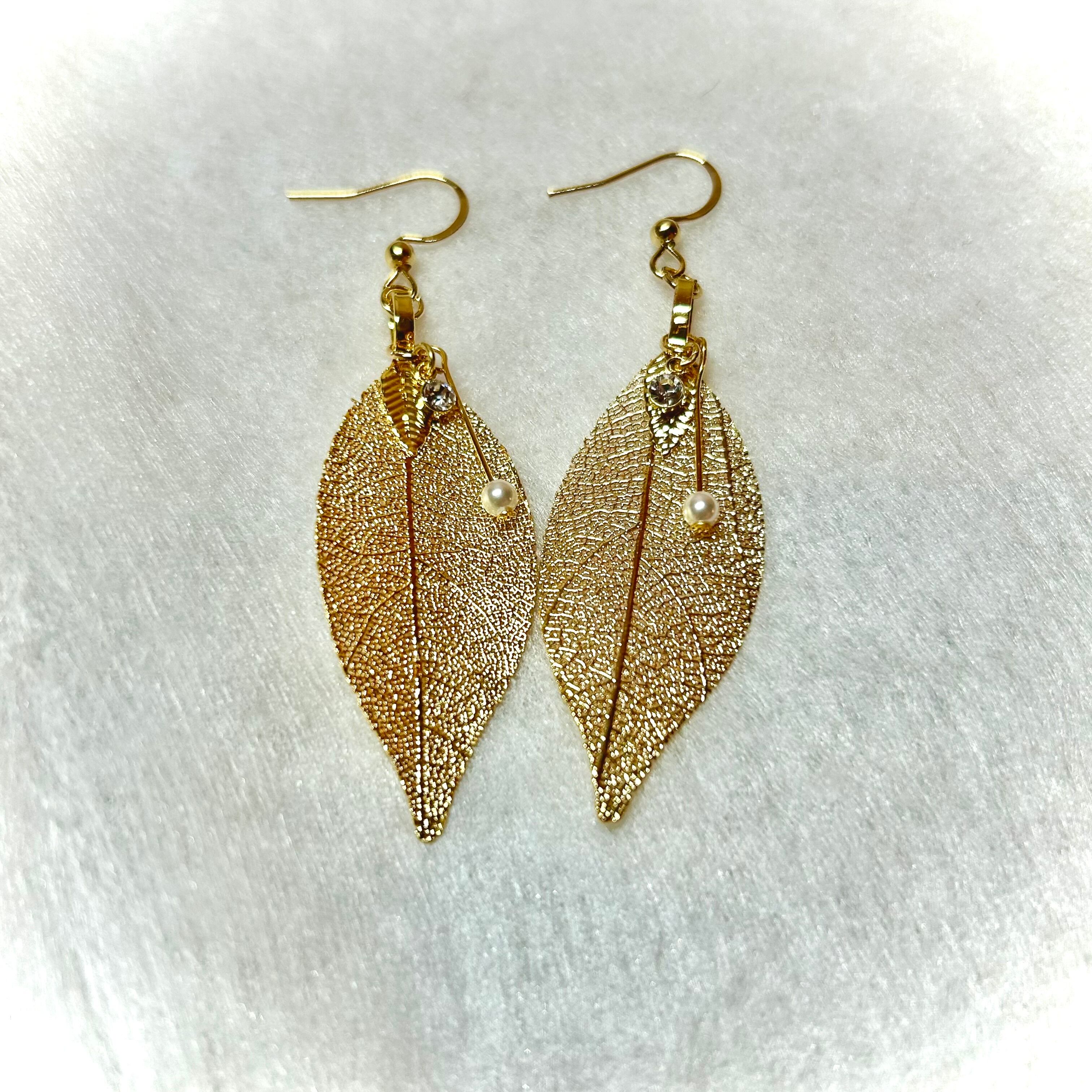 ゴールドカラーの美しいスケルトンメタルリーフピアス。