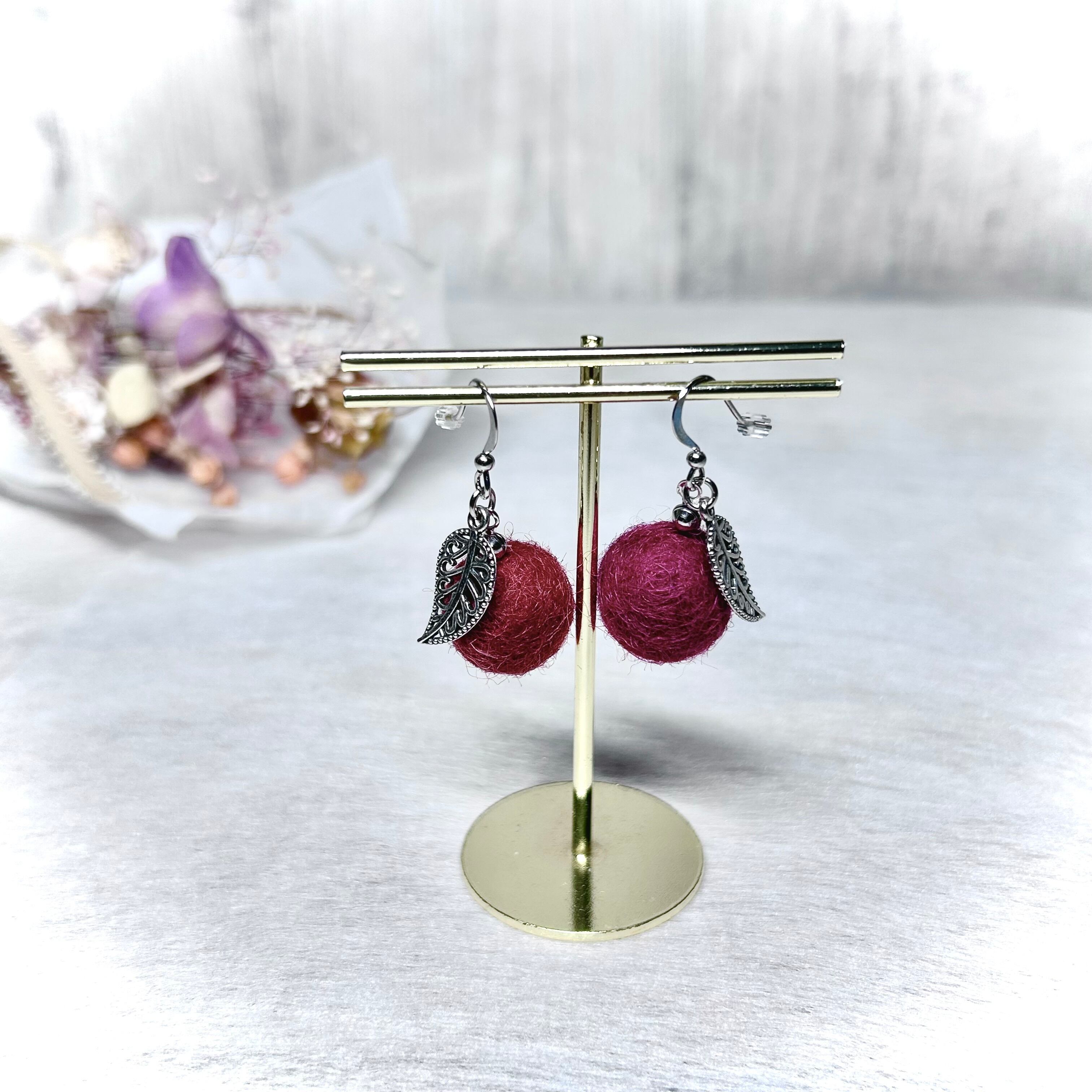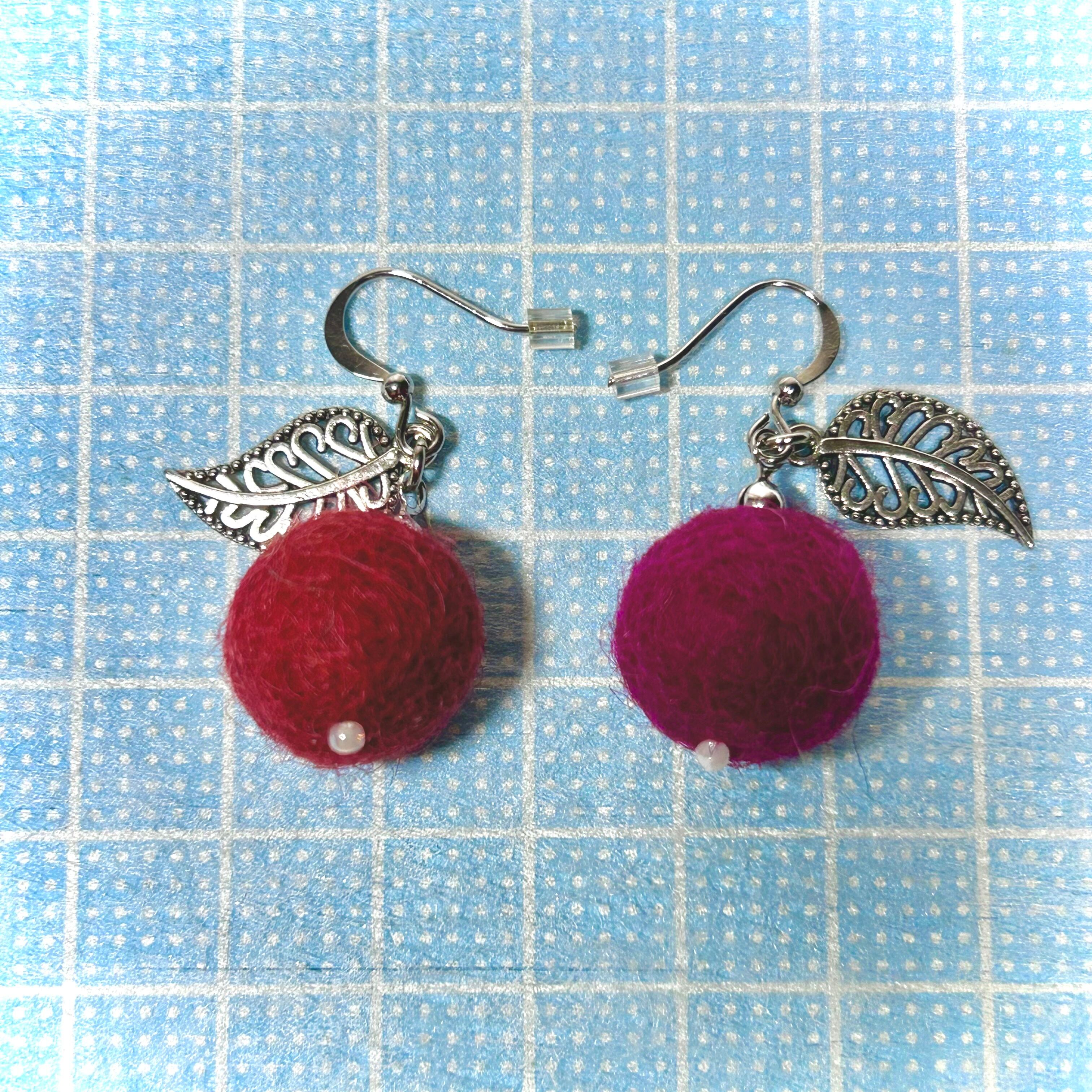 フェルトボールの色は、深みのあるレッドと、ワインレッドです