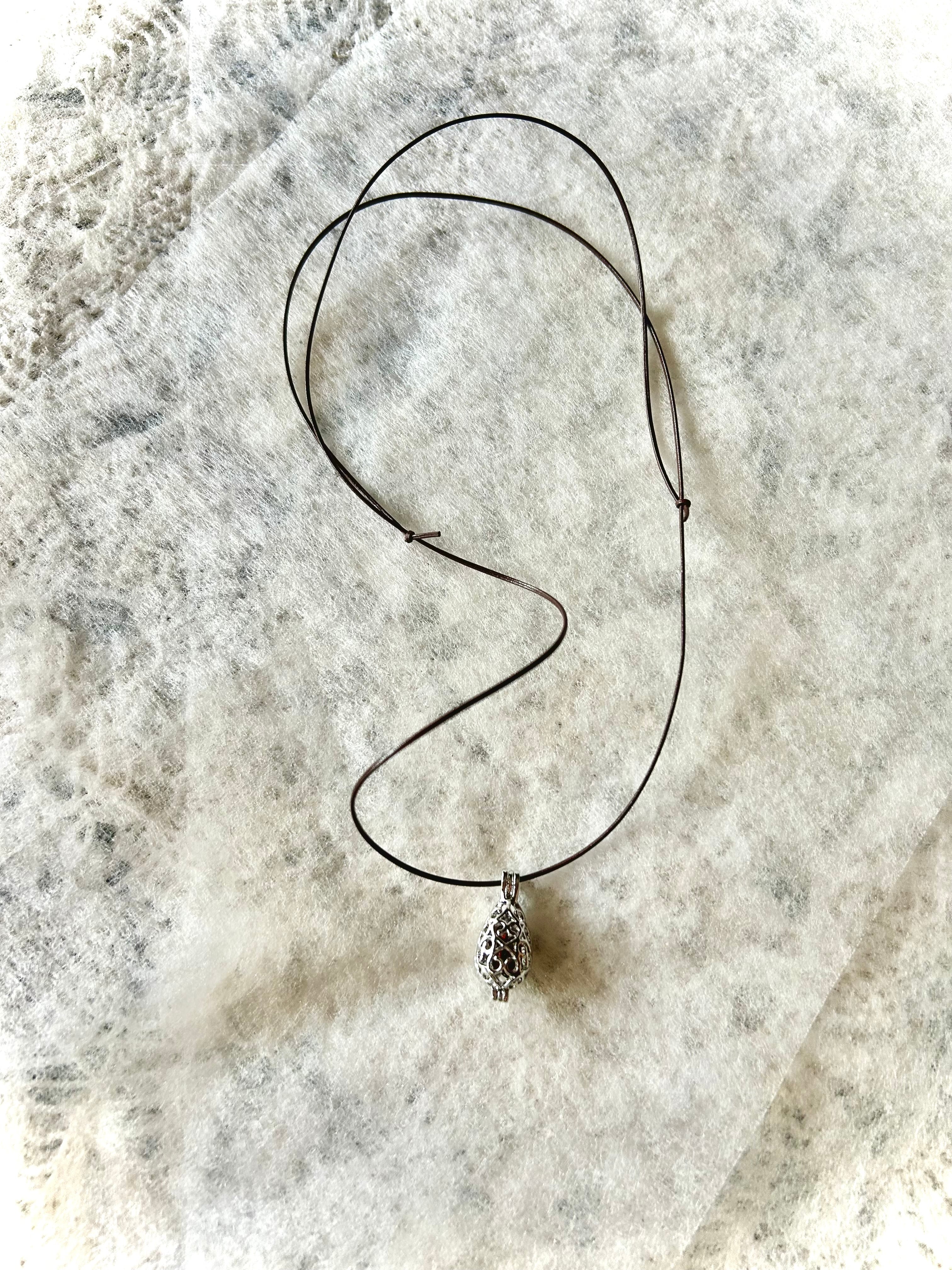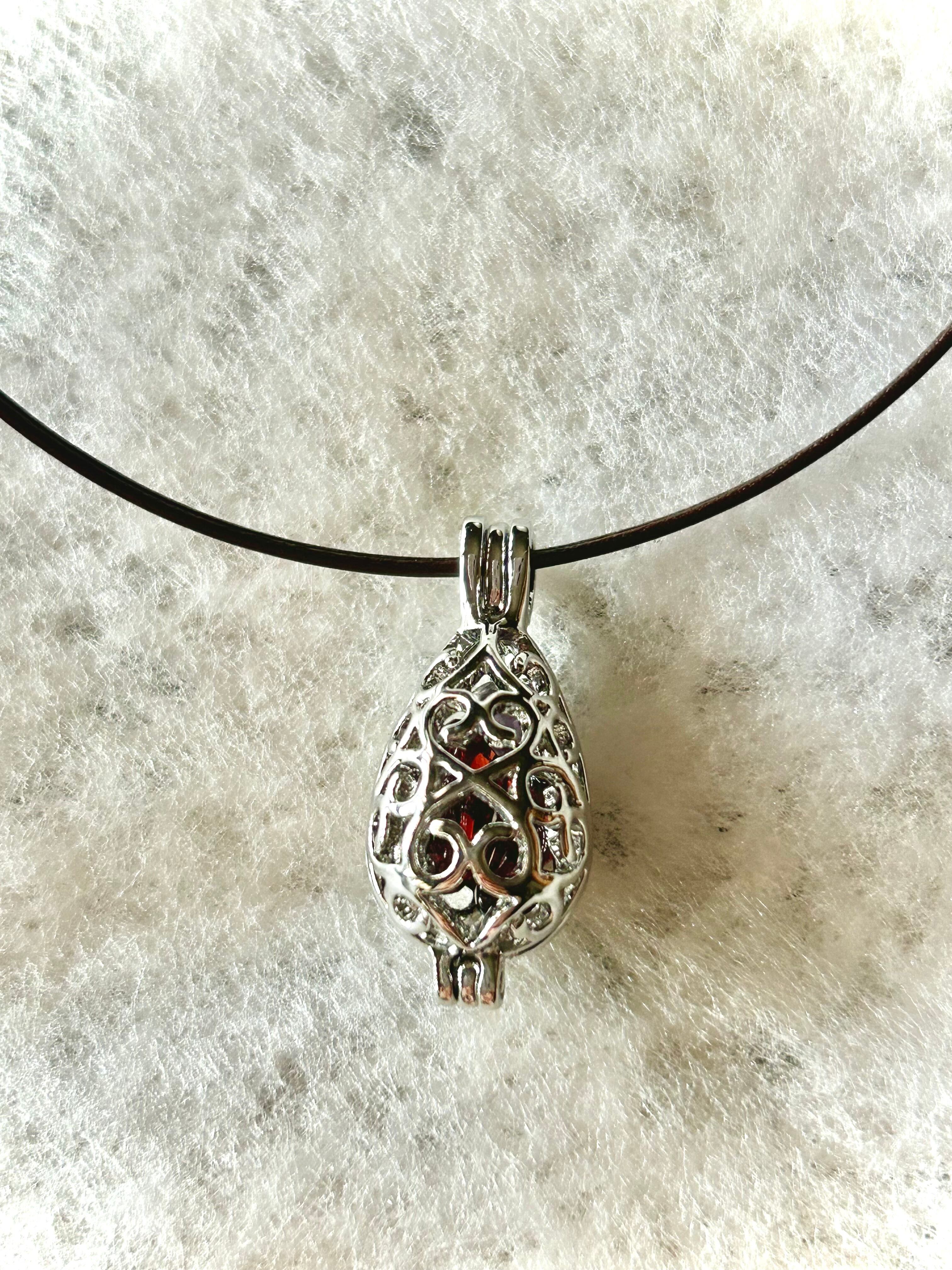 美しいガーネットを閉じ込めたケージペンダント。