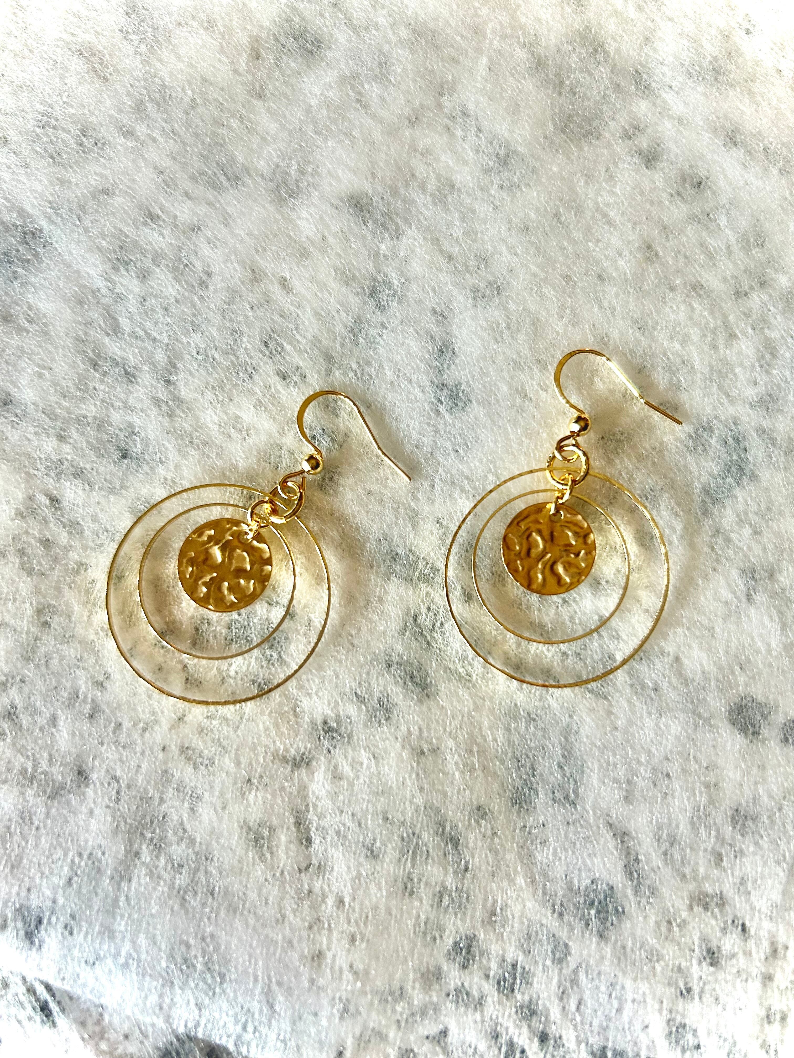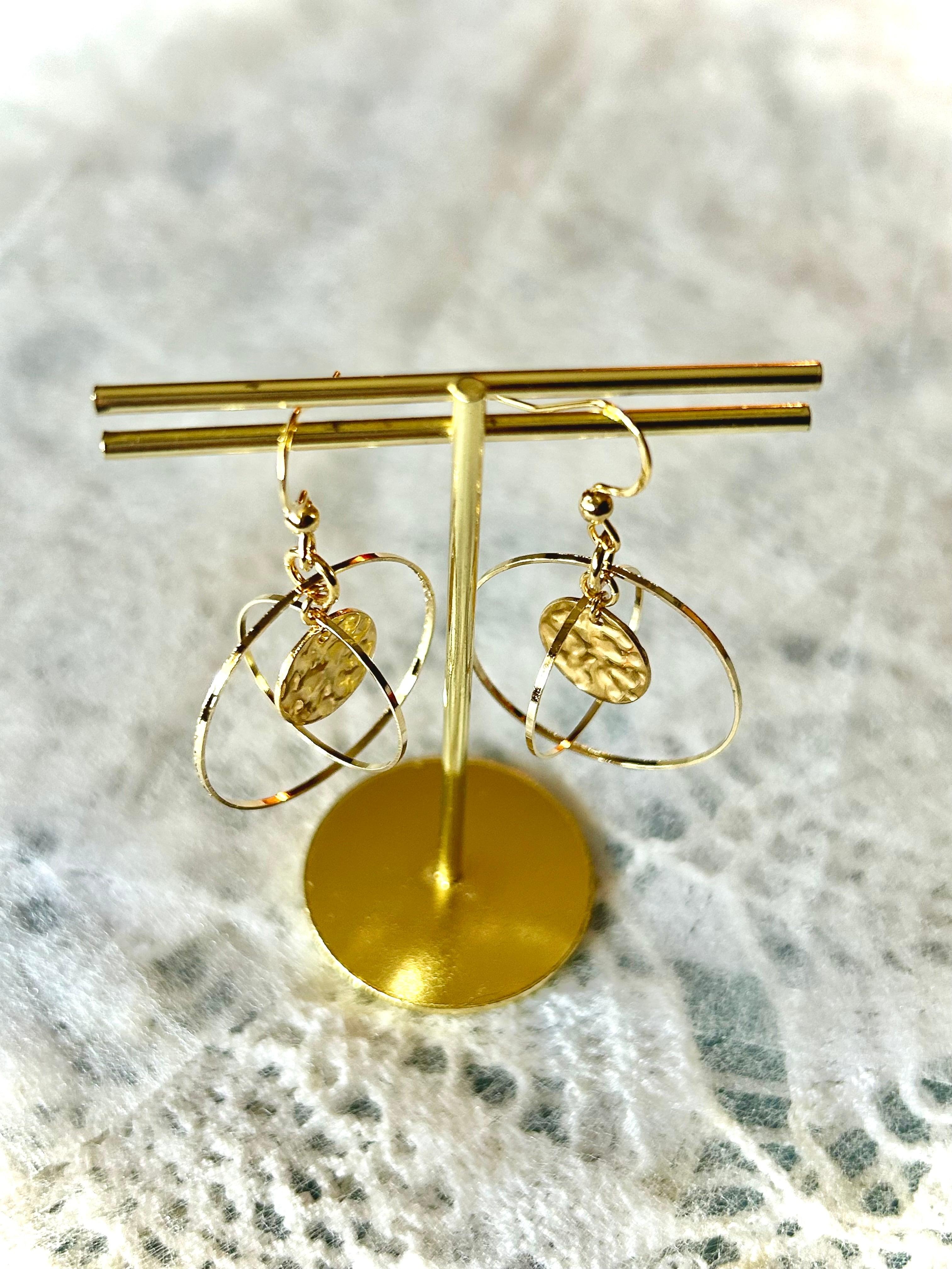 大小の輪っかとメタル素材が組み合わさった個性的なデザインが特徴のアクセサリーです。