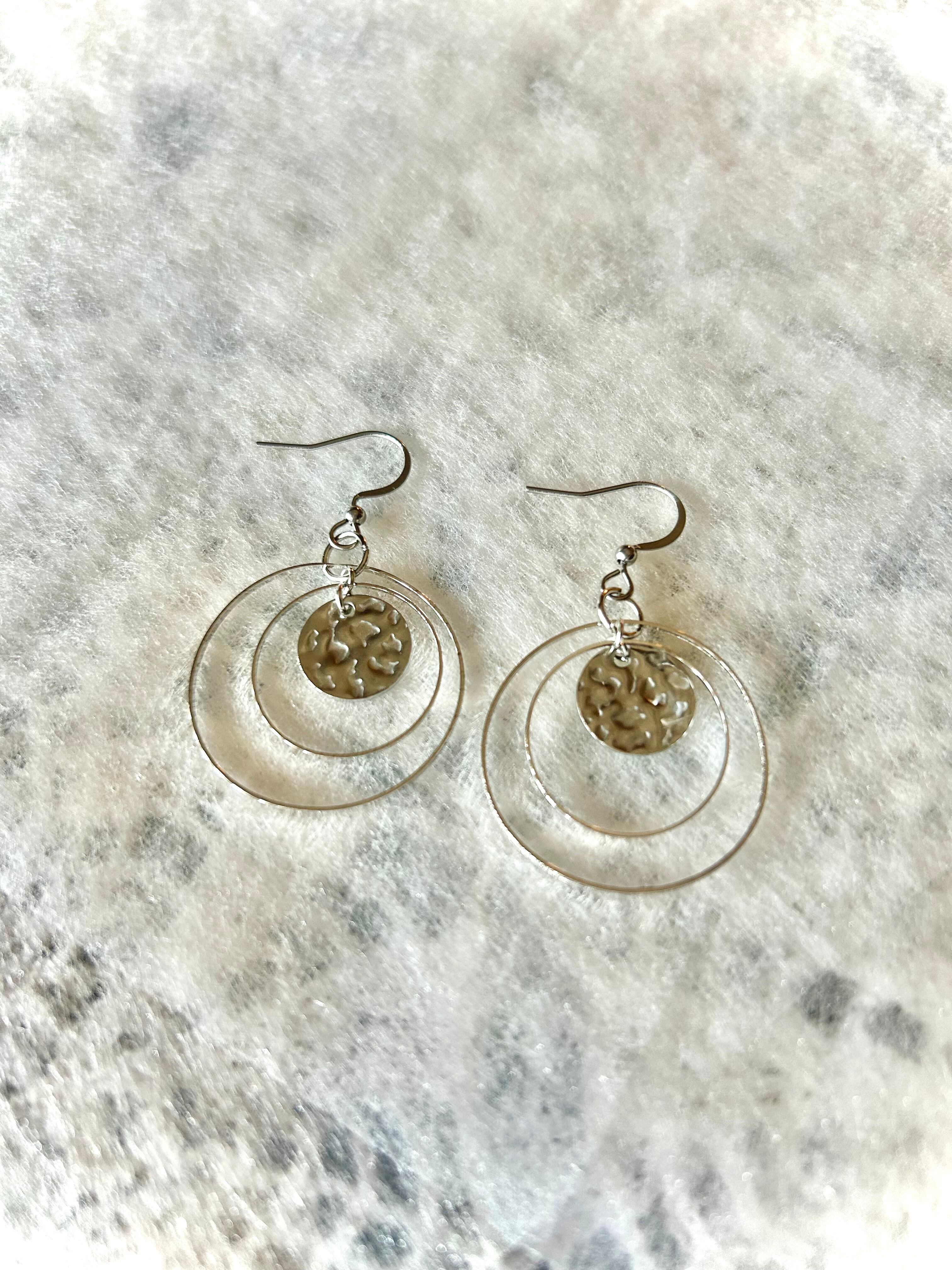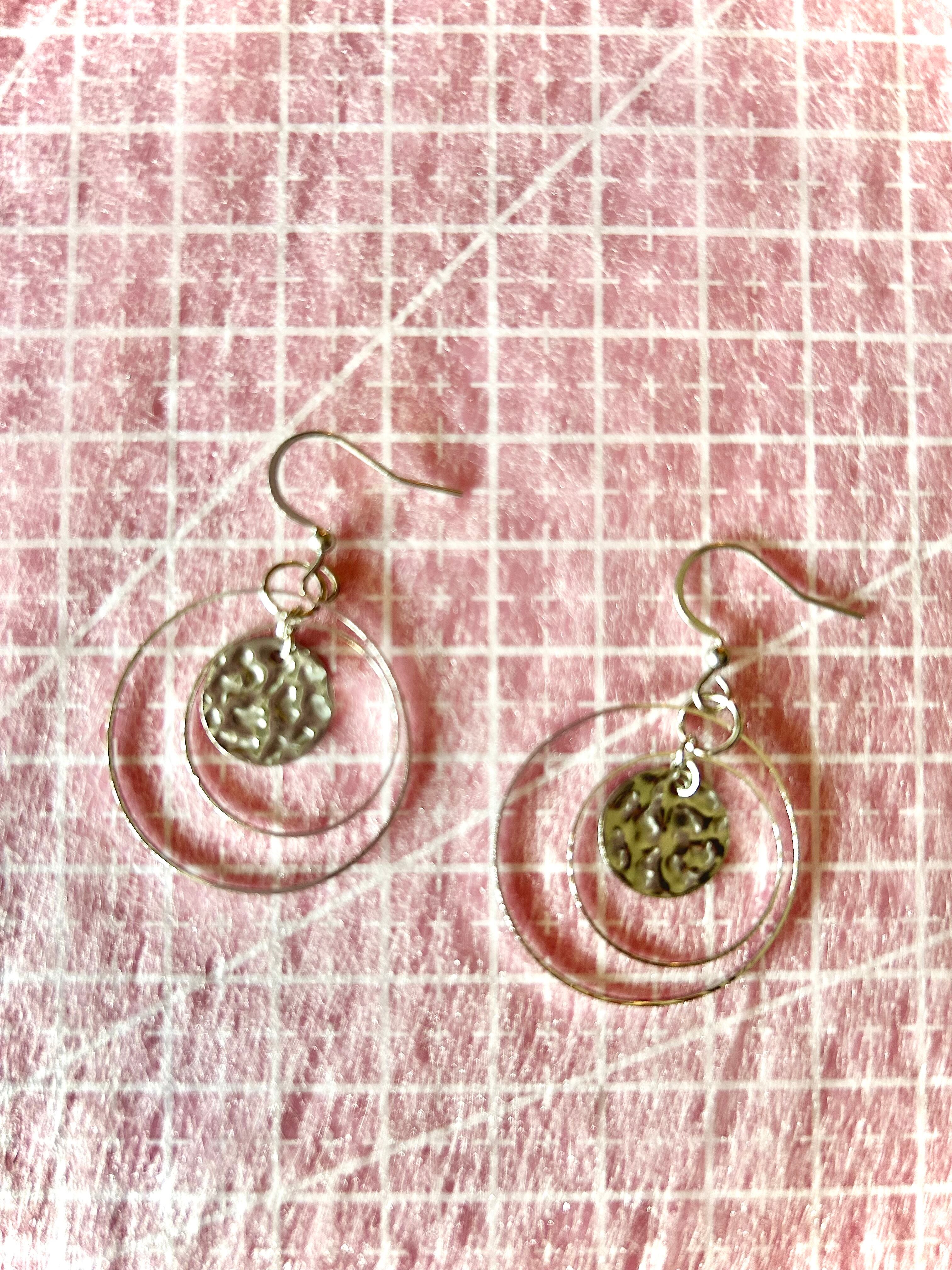大小の輪っかとメタル素材が組み合わさった個性的なデザインが特徴のアクセサリーです。