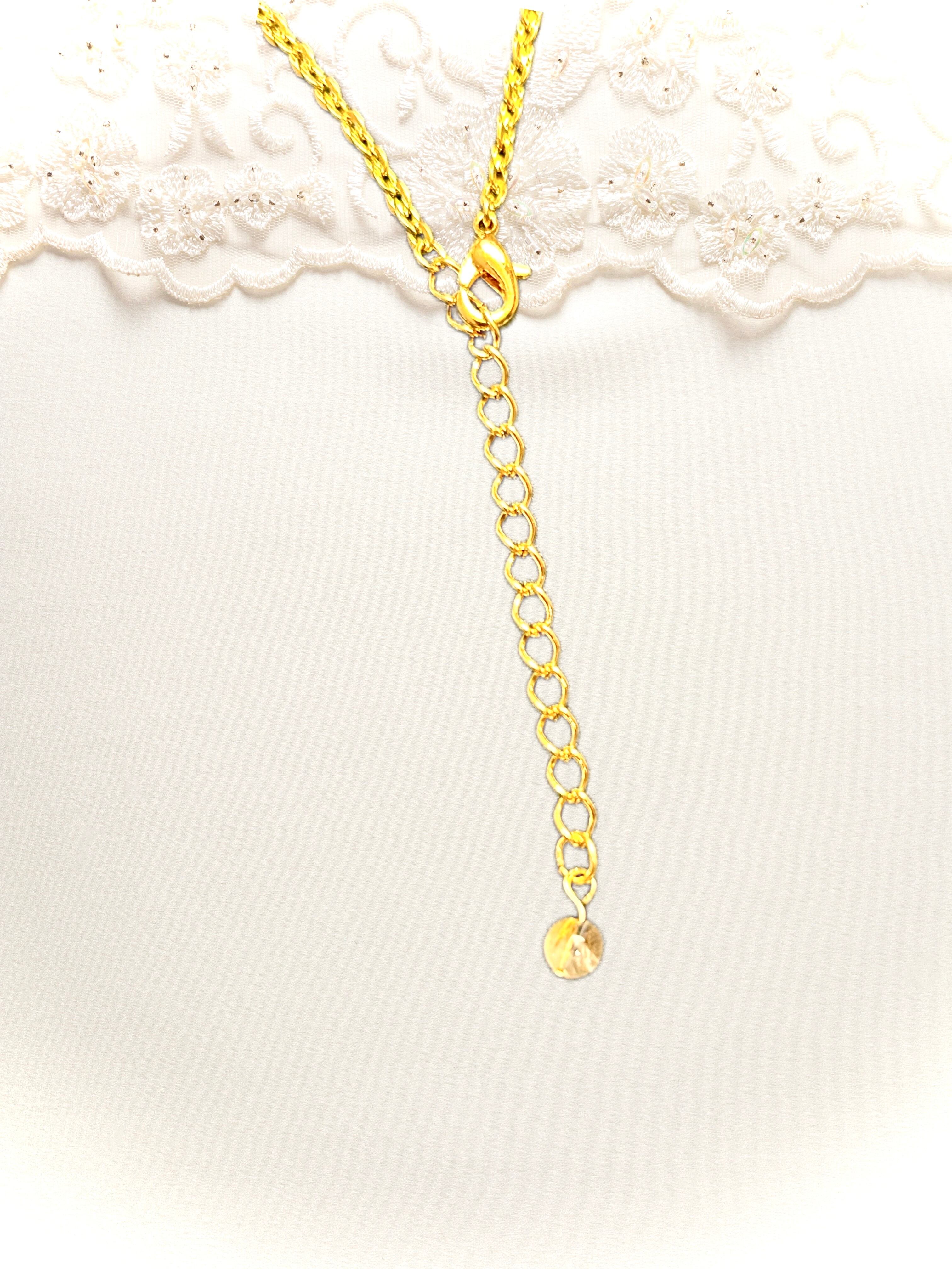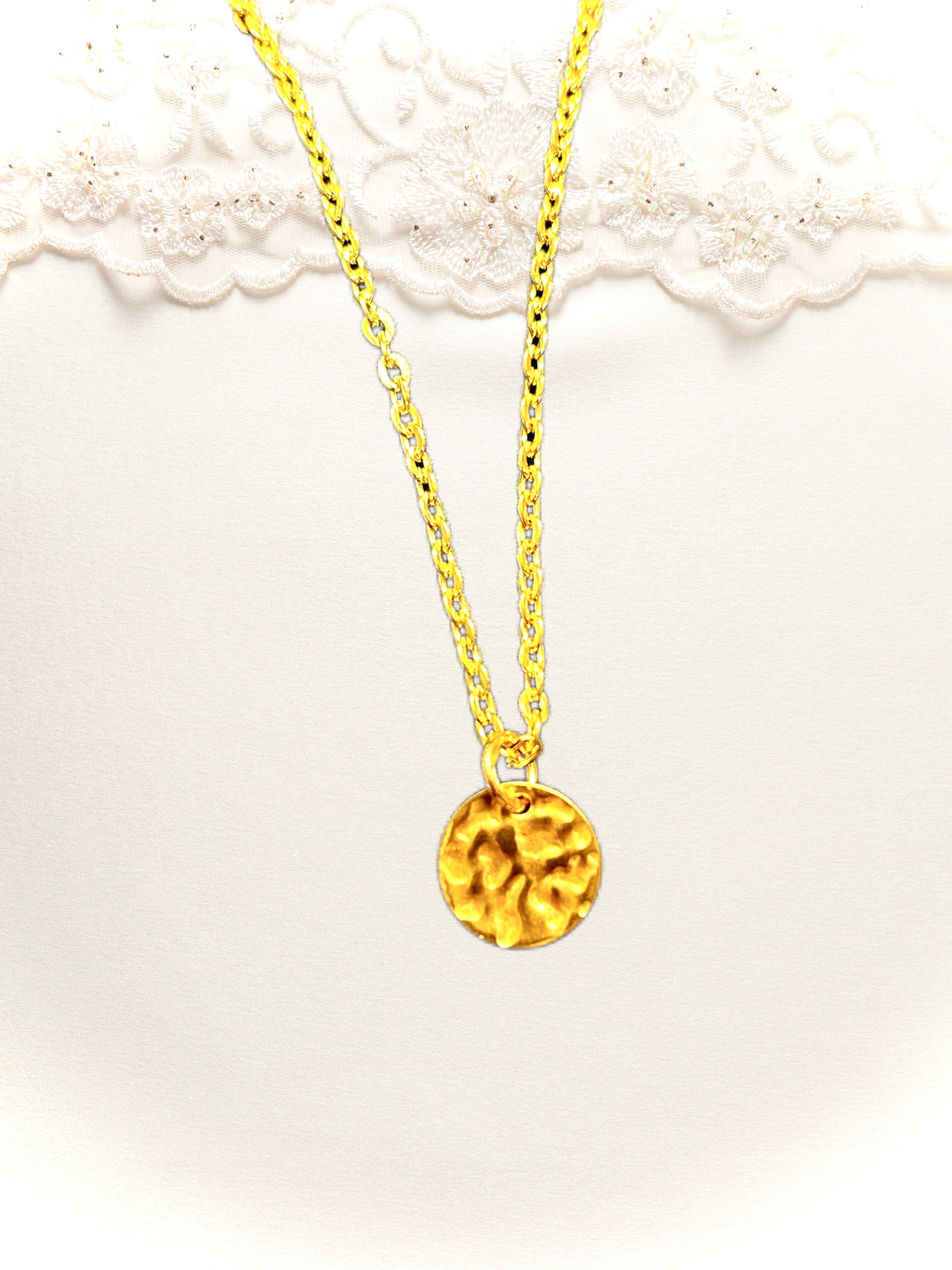 シンプルなチェーンとメタルコインが、胸元を美しく演出してくれます。