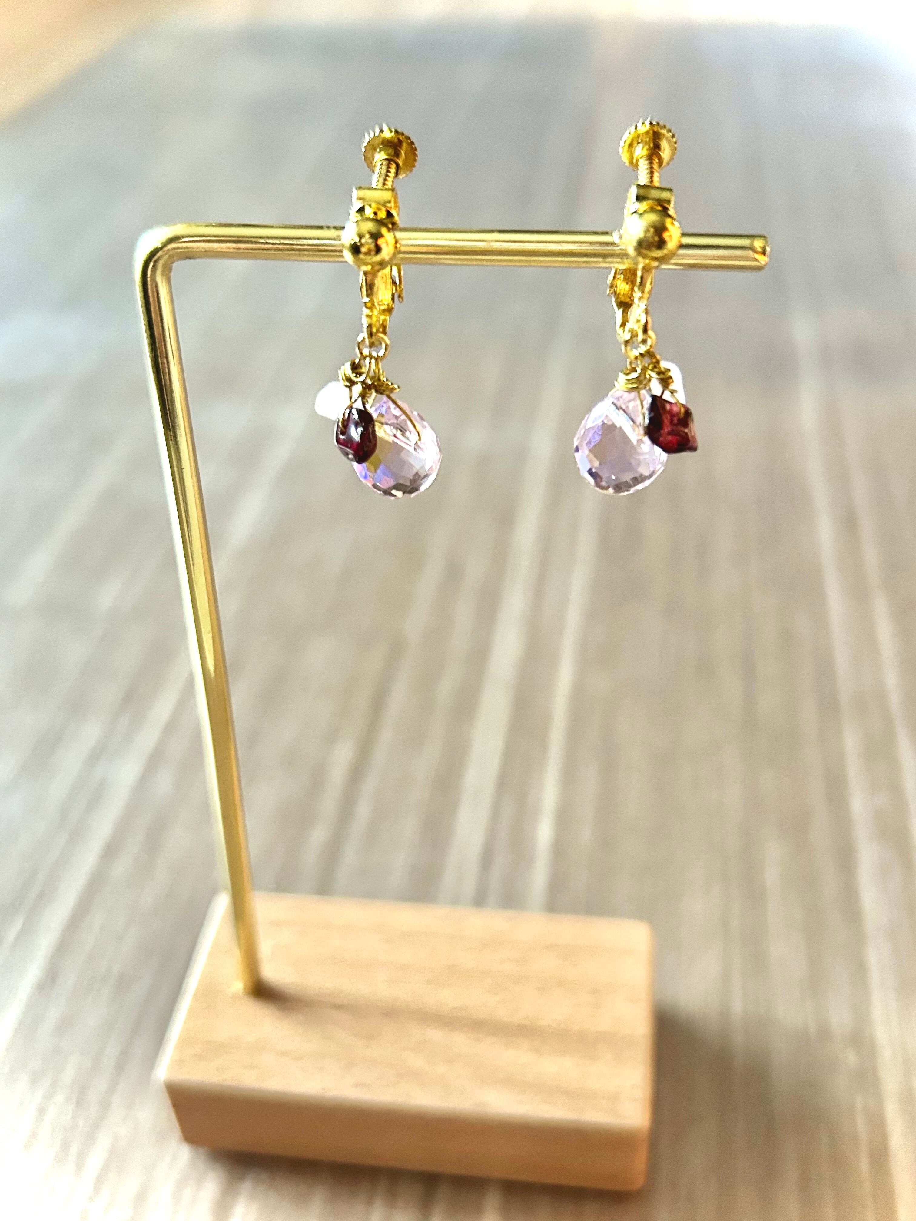 天然石の雫イヤリング